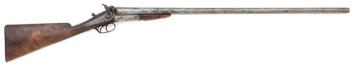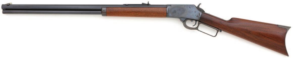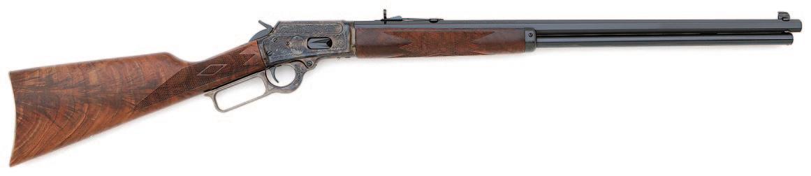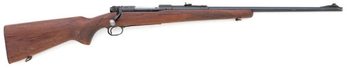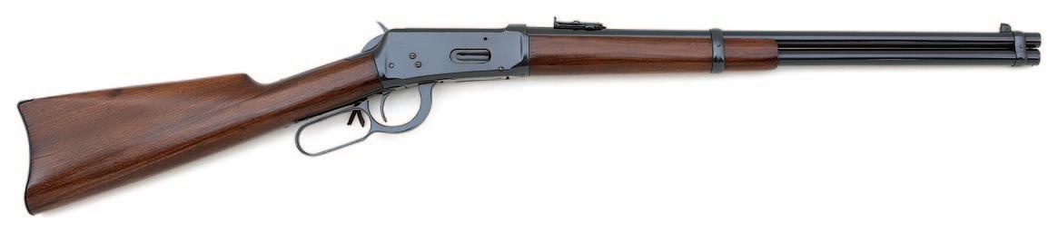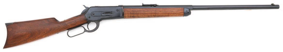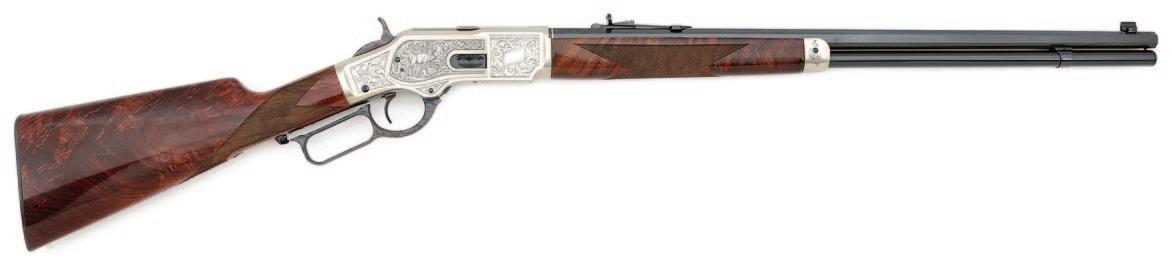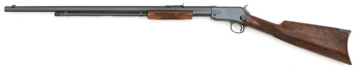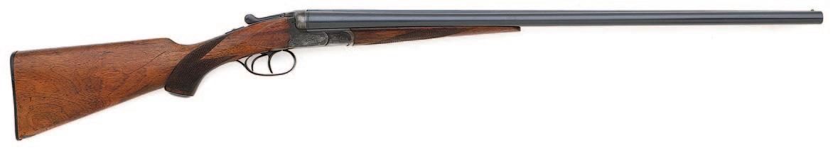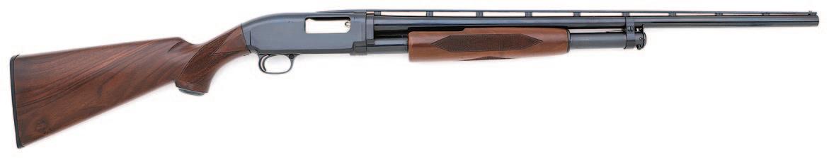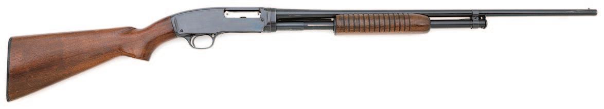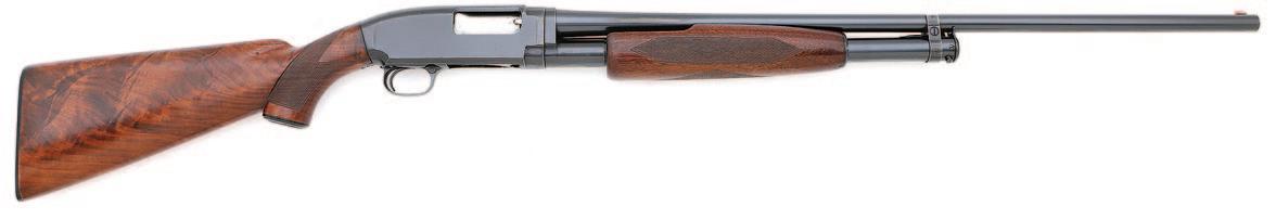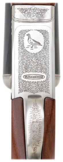 in near excellent condition with touches of mild staining and some pinprick pitting on the long tang triggerguard, the frame nicely embellished with factory foliate scroll engraving with rosettes, “Winchester” on the underside, and game scenes left and right of quail and woodcock. The straight grip walnut stock and forend are in very good plus condition with a tight about 3/4” crack at the top of the right stock flat and a few light handling marks, the checkering on the wrist, forend, and stock flats robust, and the toe displaying some attractive grain figure. The shotgun locks up tight and onface with the lever coming to rest at center and features a mechanical single selective trigger, nonautomatic safety, a robust bottom ejector with a somewhat weak top ejector, a 14” length of pull, and is sighted with a white Bradley-style front bead and a small white bead mid rib. Included is a factory box, the end label missing with a torn end flap, the box otherwise in very good condition. (14B12028-5) {C&R}