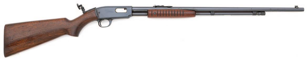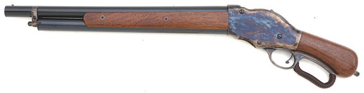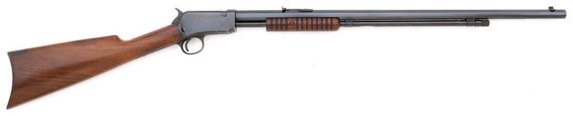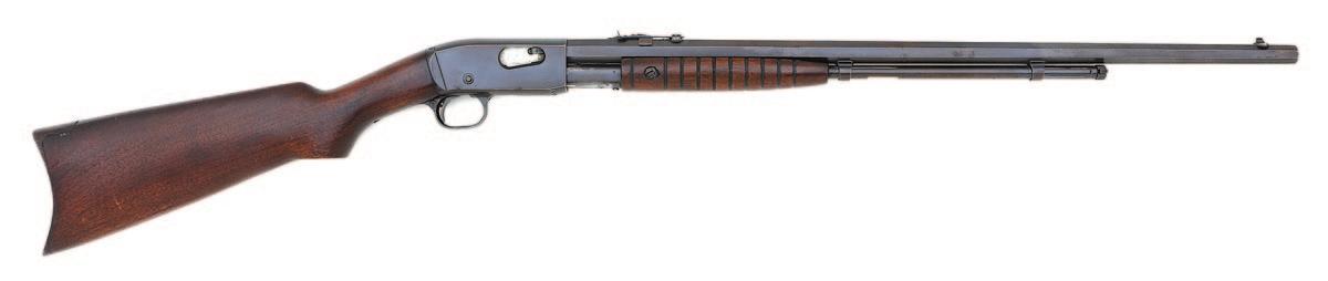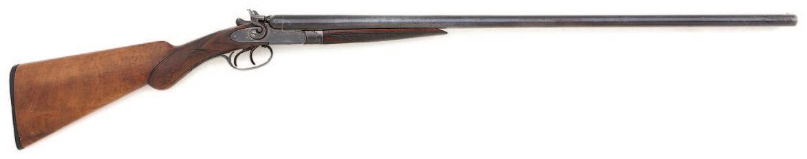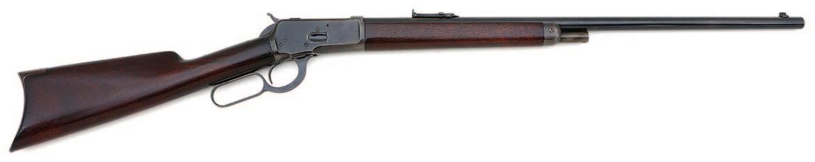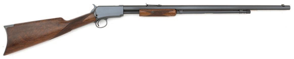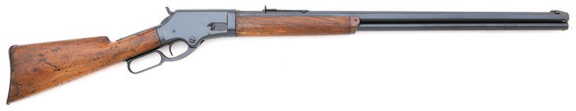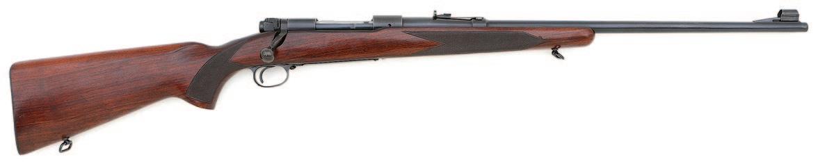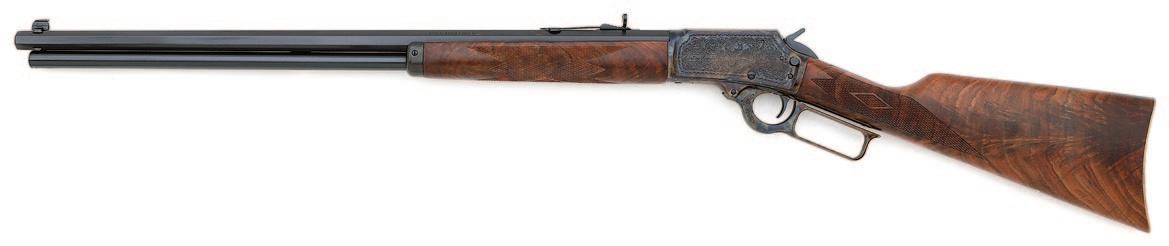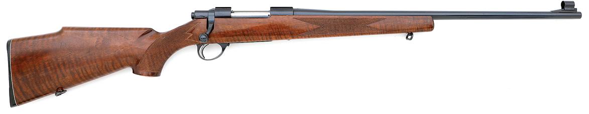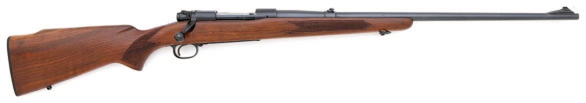 in near excellent condition with touches of mild staining and some pinprick pitting on the long tang triggerguard, the frame nicely embellished with factory foliate scroll engraving with rosettes, “Winchester” on the underside, and game scenes left and right of quail and woodcock. The straight grip walnut stock and forend are in very good plus condition with a tight about 3/4” crack at the top of the right stock flat and a few light handling marks, the checkering on the wrist, forend, and stock flats robust, and the toe displaying some attractive grain figure. The shotgun locks up tight and onface with the lever coming to rest at center and features a mechanical single selective trigger, nonautomatic safety, a robust bottom ejector with a somewhat weak top ejector, a 14” length of pull, and is sighted with a white Bradley-style front bead and a small white bead mid rib. Included is a factory box, the end label missing with a torn end flap, the box otherwise in very good condition. (14B12028-5) {C&R}