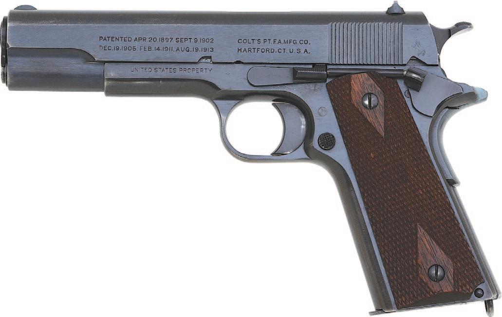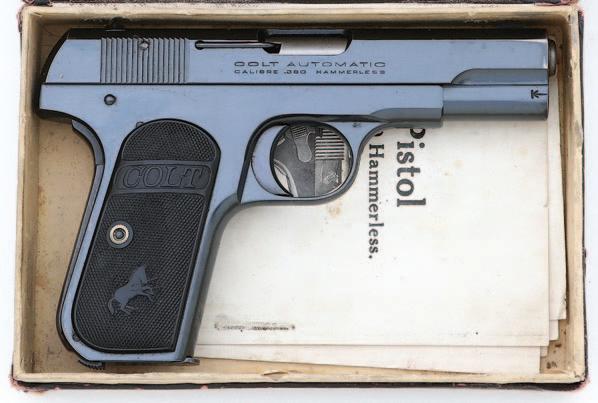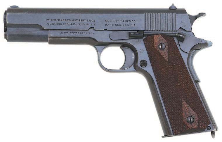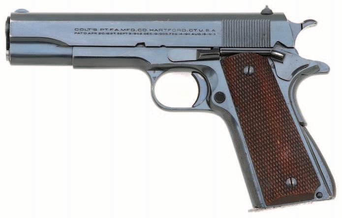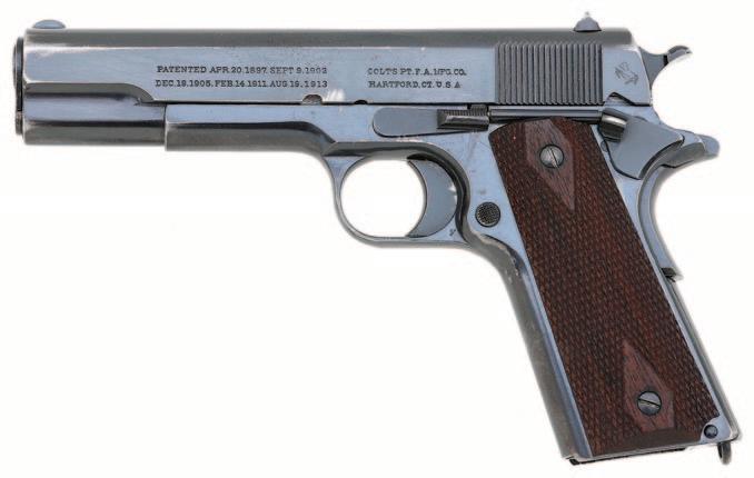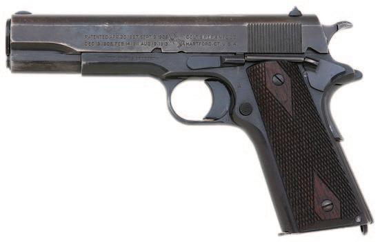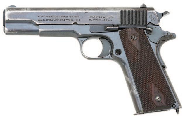 ture, Lt. Colonel Gilbert’s inspection mark is crisp as are all other markings, and it ap pears to function mechanically. This superb example includes a single Colt two-tone seven-round magazine with pinned plain floorplate. You do not often see these Great War guns in such fine con dition as this one. (8B11728-1522) {C&R}