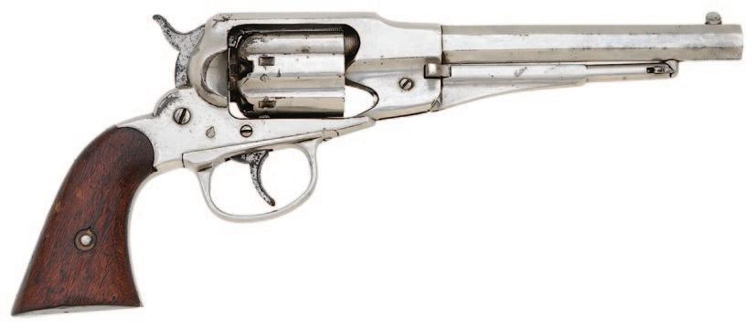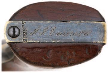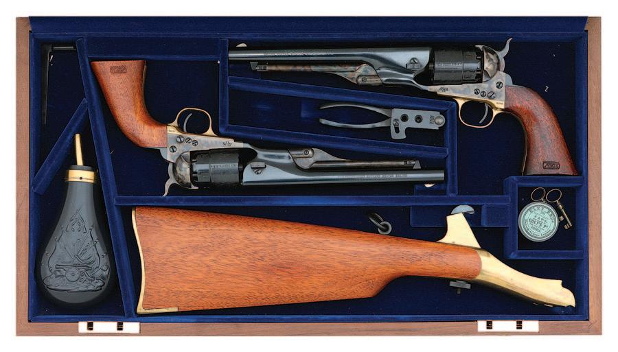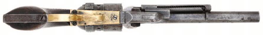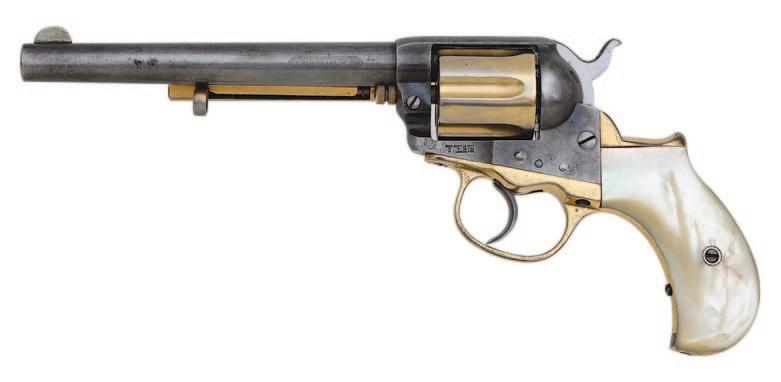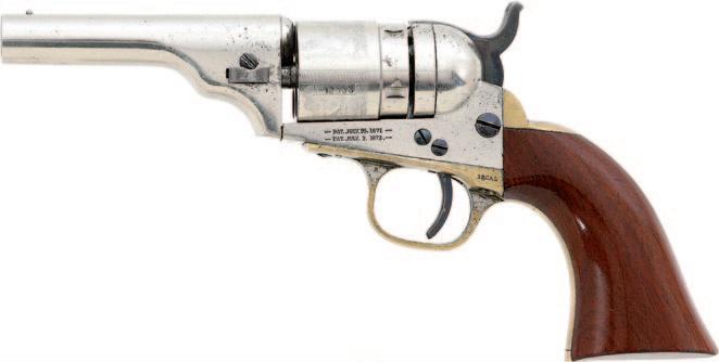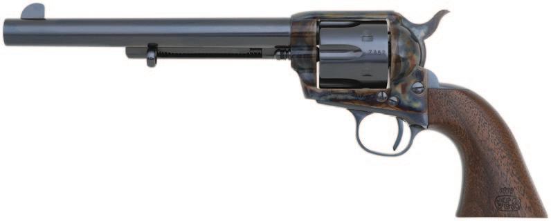 it remains in as-new condition. The metal surfaces retain about 99% original blue showing one miniscule ding on the bottom of the triggerguard. The frame and hammer have beautiful swirls of case-hardened colors. The one-piece factory walnut grips remain in excellent condition, they have faux cartouches with an 1878 date above the left one, the “8’s” appear to be double struck. The revolver is set up to imitate the U.S. Model 1873 revolver inspected by Mr. Nettleton and feature a blackpowder frame, bullseye ejector rod tab, and all appropriate parts are correctly numbered to the gun. A beautiful revolver for the collector or enthus (8B11998-47) {MODERN}