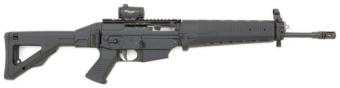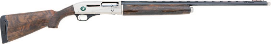 round knob pistolgrip walnut stock and schnabel-style forend are in excellent condition with only a light handling mark here and there, and features some attractive grain figure, a black diamond inlay on the underside of the forend, and an about 14 3/4” length of pull. The shotgun locks up tight and on-face with the lever coming to rest right of center and features a single selective inertial trigger, a nonautomatic safety, ejectors that are a bit out-of-time but quite robust, and is sighted with a green fiber optic front. The shotgun appears to function well mechanically and included is a Sig Arms branded aluminum hardcase with fitted foam interior, five chokes (cylinder, improved cylinder, modified, improved modified, and full), a choke wrench, and manual. A visually striking shotgun made by Rizzini for Sig Arms. (14B12028-1) {