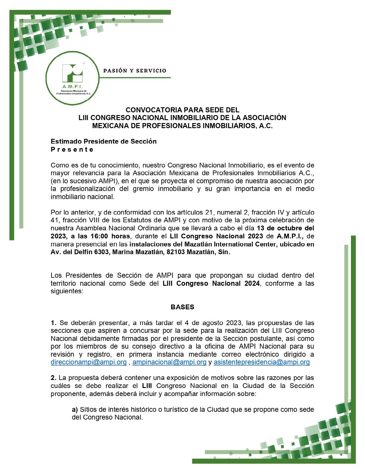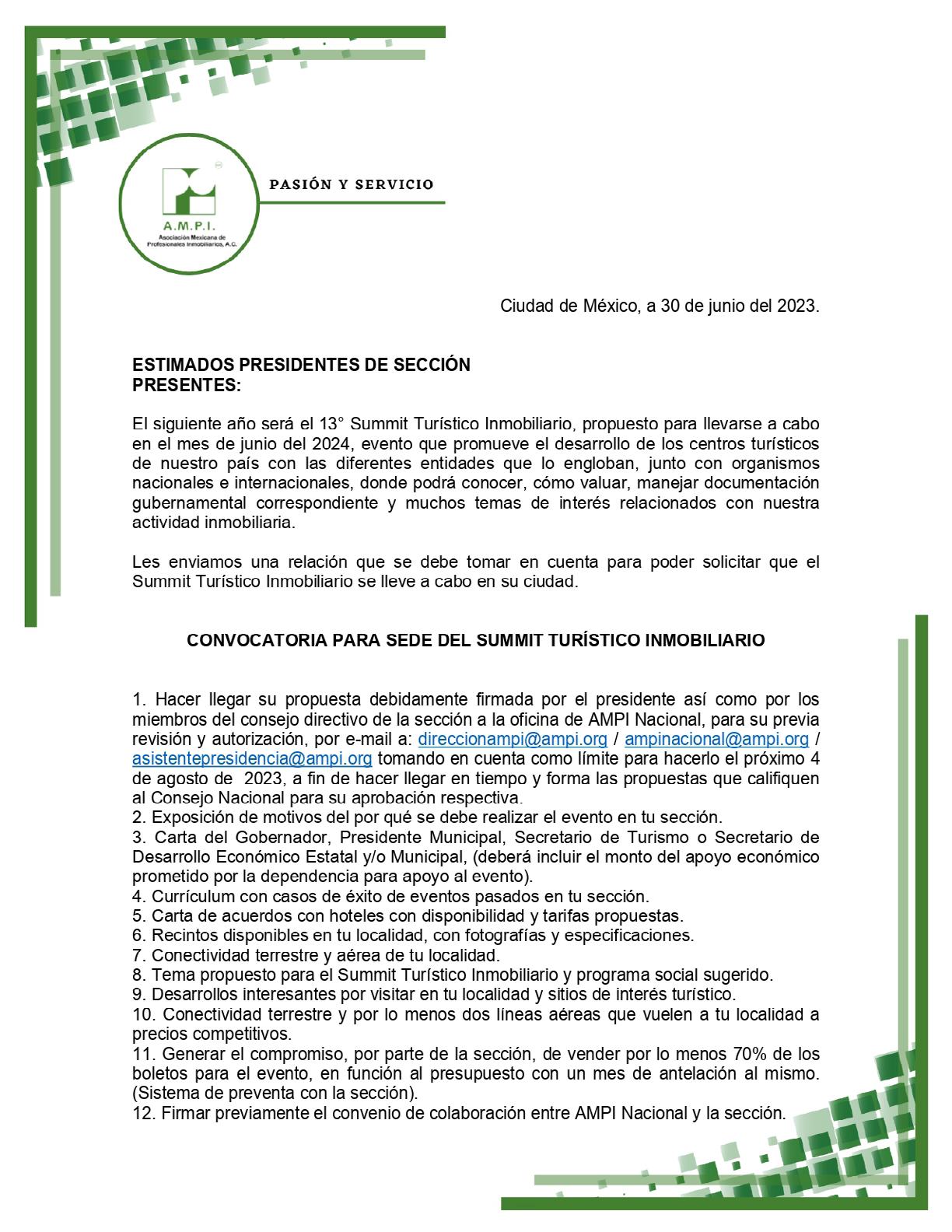 Estimados Asociados y Afiliados: Con gran satisfacción me dirijo a ustedes para compartir los logros y avances que hemos alcanzado en la primera mitad de este año en la Asociación Mexicana de Profesionales Inmobiliarios (AMPI).
