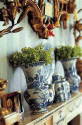 Blue-and-white will look spectacularly handsome wherever you put them, whatever the lighting conditions and atmosphere of their given location. Perhaps the ‘signature’ that is most likely to reveal Roger’s hand in a decorative scheme is his frequent use of blue-and-white as a counterpoint to highly decorated rooms and richly coloured and patterned chintzes. The effect is superb in its most simple form: adding a single, deeply comfortable chair beautifully tailored in a blue-and-white check, for example, is like providing iced mineral water in a crystal glass during a rich meal.