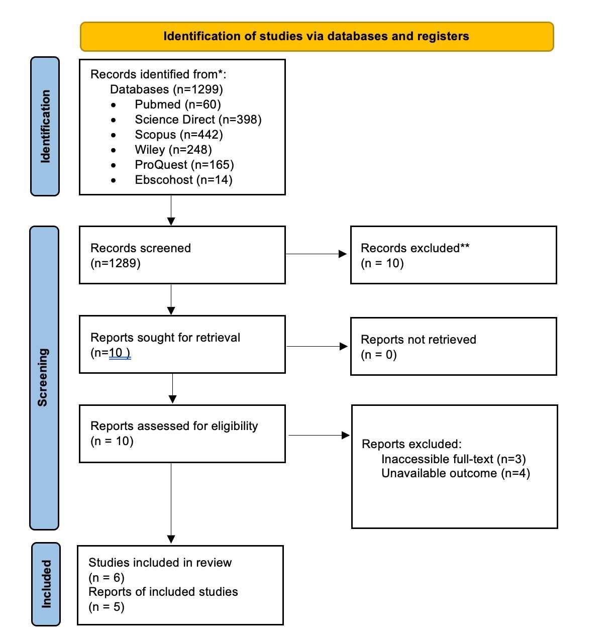 commentaries, conference abstracts, editorial letters, studies that cannot be accessed through full papers, and studies conducted in languages other than English are not eligible.