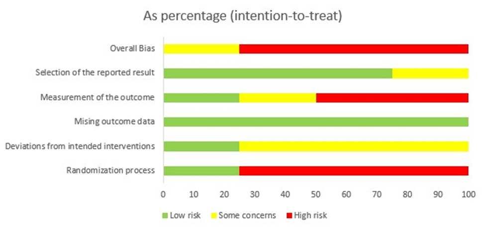 The quality of each study were carefully analyzed by using the Cochrane risk-of-bias tool for randomizedtrials (RoB2)l.3studiesshowedhigh riskofbias(Savoreyet al;Jeanet al;Thomas