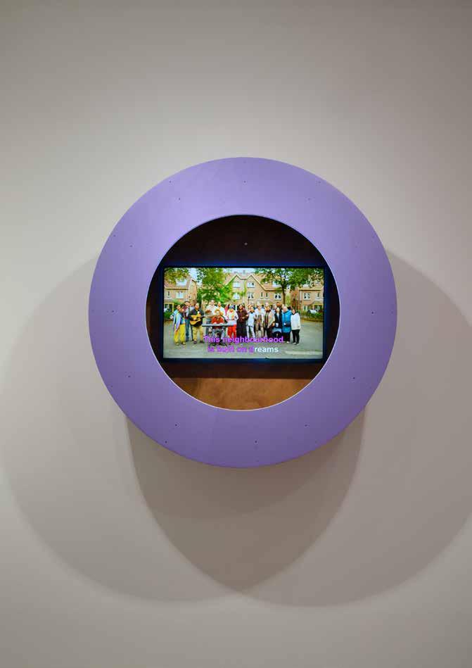 Raquel van Haver (1989) presenteerde in de hoofdzaal de serie The Collateral Kin (2025) met zes groepsportretten in opdracht van het Amsterdam Museum, van hedendaagse Amsterdammers met een invloedrijke of verbindende en strijdbare rol in de stad . Het tweede deel bestond uit ingezonden verbeeldingen van mensen uit het hele land, die we vroegen naar hun toekomstbeeld . In het derde deel waren vijftien kunstopdrachten te zien van kunstenaars(collectieven) die we uitnodigden om hun blik op de toekomst te visualiseren . Middels samenwerkingen met de IMC Weekendschool en het Mediacollege Amsterdam kregen in het vierde deel de toekomstwensen en perspectieven van kinderen en studenten een podium .
