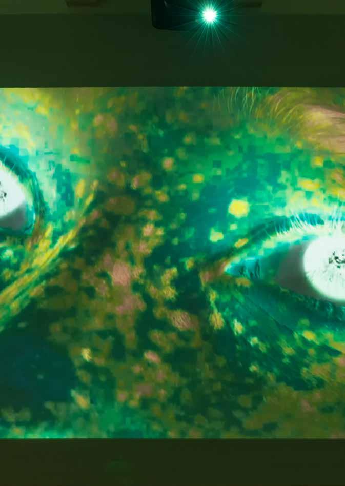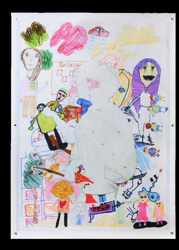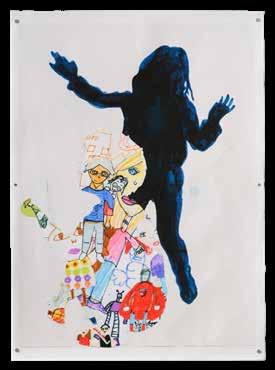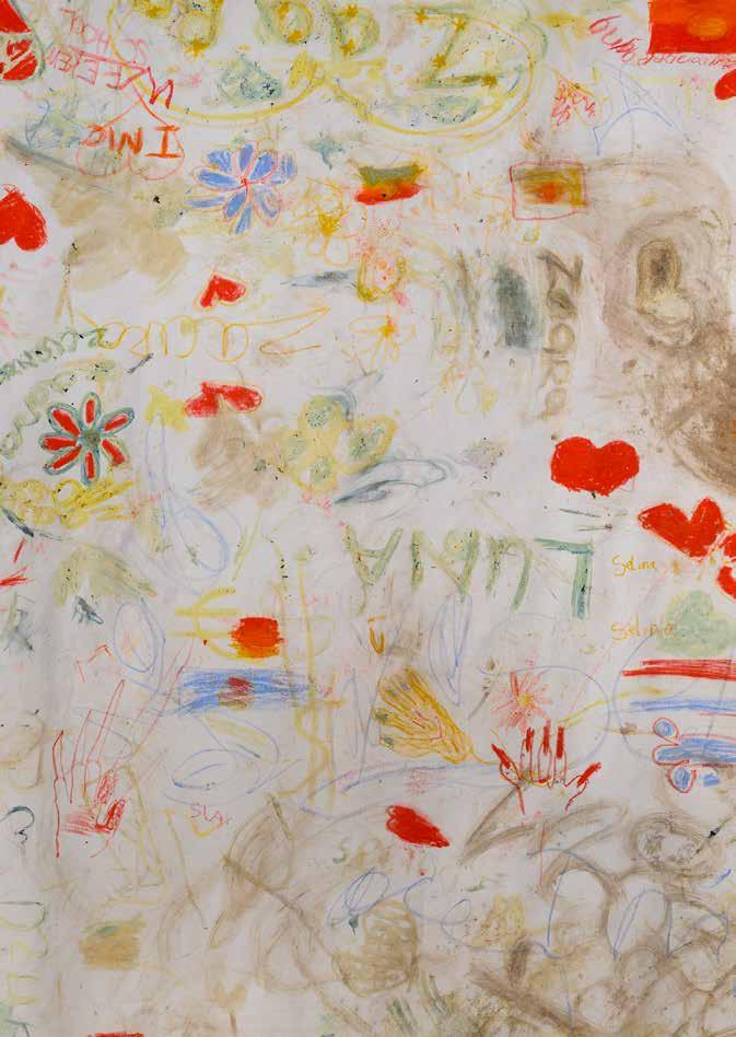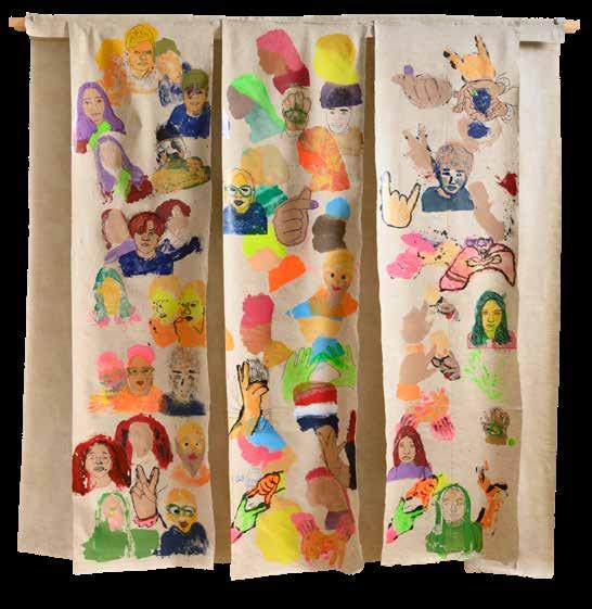 RvH Ik gebruik bijvoorbeeld veel fotomateriaal . En de achterkant is heel interessant omdat dat alle borden zijn waarop we hebben gelaserd, dus je kan precies teruglezen wat we hebben gedaan . Omdat dit project over archiveren gaat, is het belangrijk dat er een mate van transparantie is, zodat de toeschouwers inzicht krijgen in het proces van de productie van het werk . We laten dit keer dus ook echt de achterkant zien en dan kom je erachter dat het van de voorkant hele krachtige doeken zijn, maar als je aan de achterkant kijkt, zijn ze bijna doorzichtig . Dus we spelen met dat fragiele, terwijl het ook heel sterk blijft . En dat is ook de aandacht die het thema vergt . De mensen die ik heb geportretteerd zijn altijd heel sterk, maar het blijven mensen en die hebben ook op het laatst maar een klein en kwetsbaar hartje .