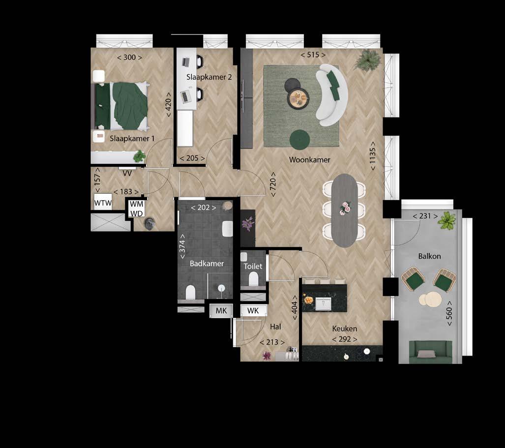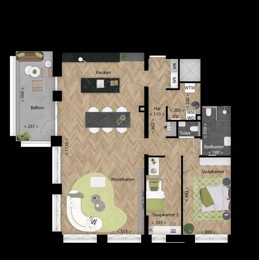 Een prachtig modern en ruim appartement met drie kamers. Het heeft een balkon op het zuidwesten, waardoor je buiten kunt zitten in de middag- en avondzon. Dankzij de duurzame afwerking en het voorlopige energielabel A++ of A+++ woon je hier comfortabel én toekomstbestendig. Je hebt een inpandige berging en kunt je auto parkeren op een eigen parkeerplek in de afgesloten stallingsgarage onder het gebouw.