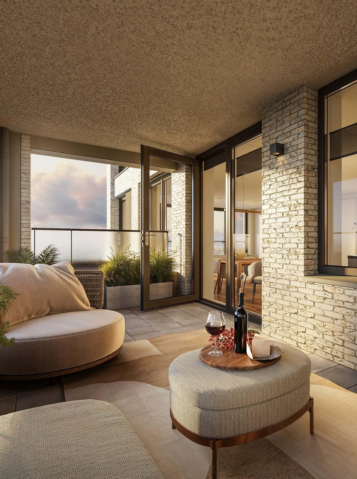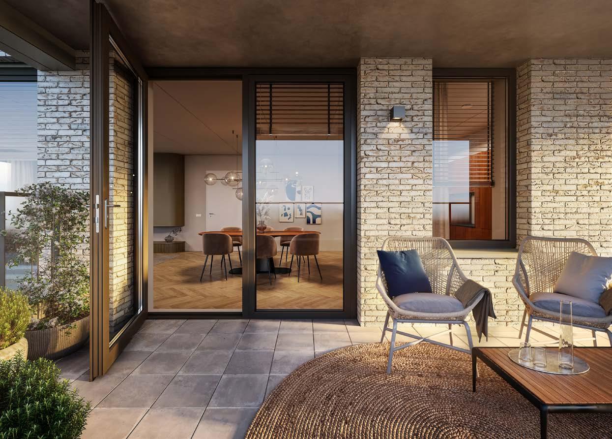 28 koopappartementen bevinden zich hier. Als je vanaf Ferm de loopbrug pakt, kom je achtereenvolgens in Amice, Nexus en Fier terecht. De vier gebouwen hebben karakter. Een eigen karakter, bovendien. Maar juist door alle vier uniek te zijn, vormen ze samen een ijzersterk geheel.