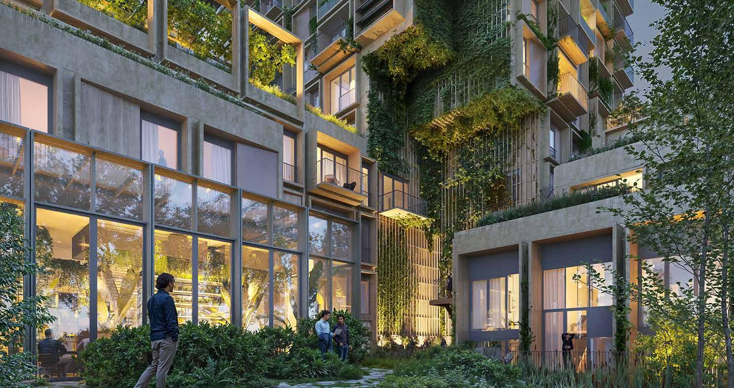 Niet alleen de daktuinen, ook de groene verticale geveltuinen en de groene binnenruimtes dragen bij aan de natuurlijke uitstraling en beleving. Het hele gebouw ademt biophilic design. Deze wijze van ontwerpen gaat uit van de liefde voor het leven of levende systemen. Het is wetenschappelijk bewezen dat zicht op en nabijheid van natuur een kalmerend en herstellend effect op lichaam en geest heeft. Hier laadt de geest weer op. Rust en balans, mét de bruisende Amsterdamse levendigheid om de hoek. In de VvE zullen commissies tot stand komen om ervoor te zorgen dat de daktuinen er altijd netjes uit zien.