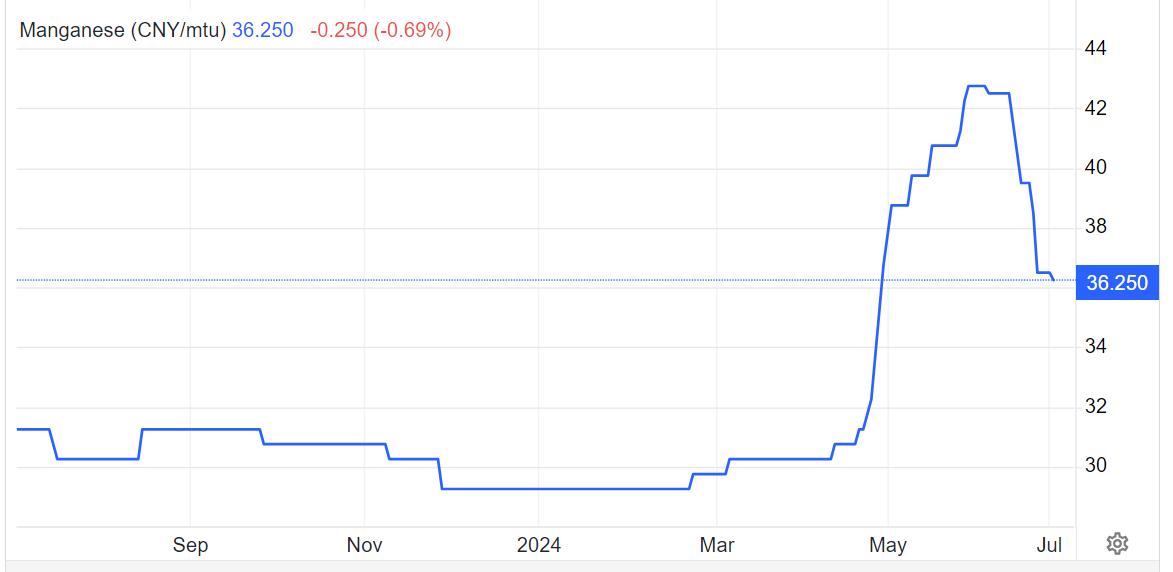 Interesting events have swept this year through global manganese supply, prompting us to seek exposure to producing assets (Jupiter Mines in South Africa). In late March, a cyclone swept through Groote Eylandt, an island off Australia’s Northern Territory’s Arnhem Land. It is there that Australian major mining company South32 operates a 6-decade old manganese mine. Prices recorded for 37% of the product at Port Elizabeth in South Africa’s Eastern Cape reacted immediately, adding 8%. South32 announced that it did not expect the operation to run smoothly until early 2025. Groote Eylandt produces around 1.8 million tonnes of manganese, almost half of Australia’s total output.