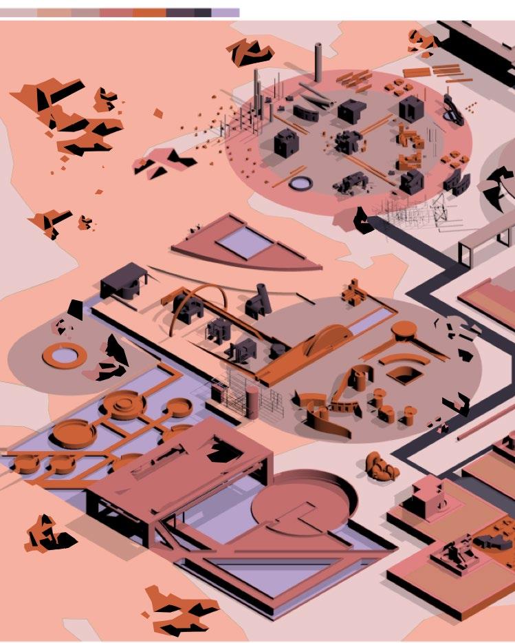 a hypothetical electronic waste processing plant will act as a vessel for the consideration and management of physical electronic waste. to evaluate these seemingly different states of existence within one perspective, a third space will serve as a lens through which the physical can exist alongside elements of virtuality.