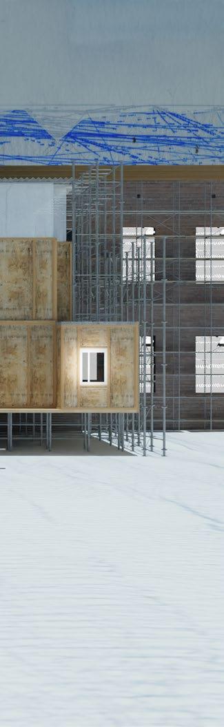 Shifting scales and considering the body of the factory as a vessel, strategically distributed points of visual access allow the different programmatic elements to bleed into each other, creating a fluid pipeline between reuse, production and education.