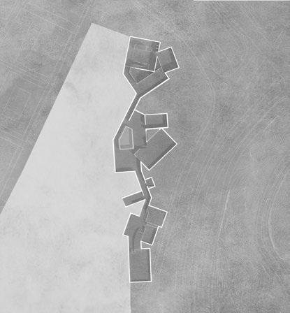 Striking a balance between human intervention and technology, the campus layout is organized by the blending of ideas of accessibility and form generation animations created through physics engines in the animation software maya. each program is assigned to a fragment and scattered across the plane, resulting in an organic, but fixed design principle.