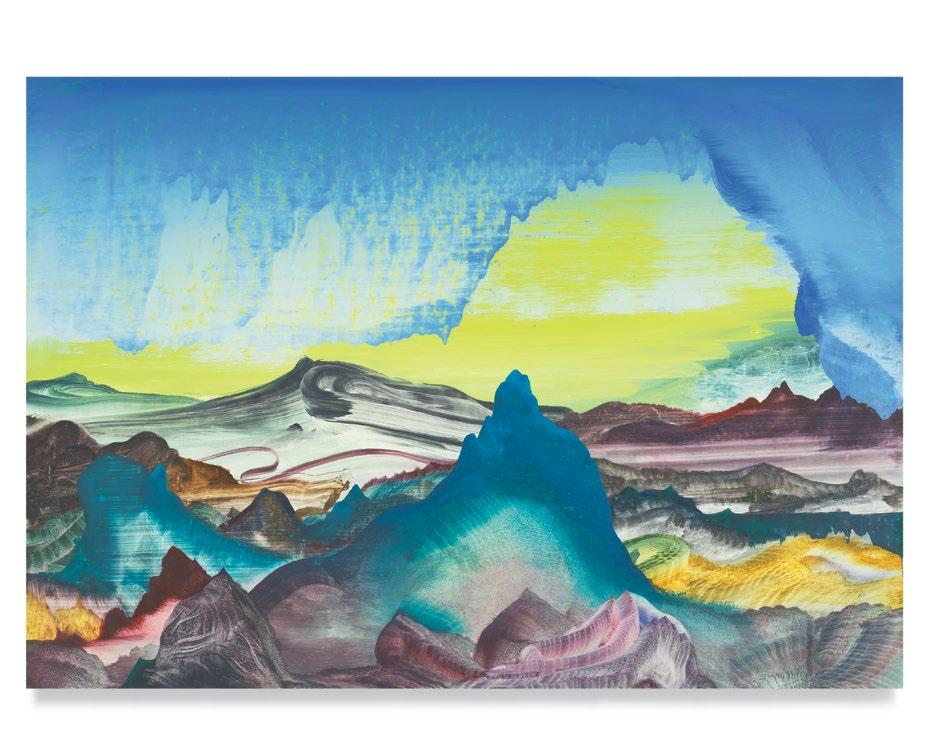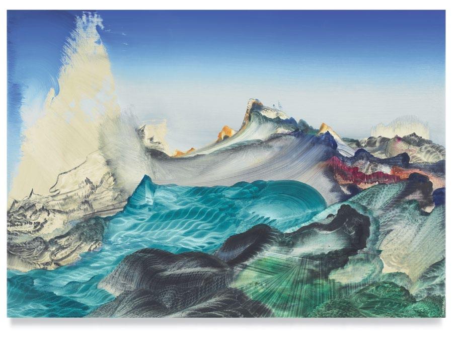 Is landscape, as Green renders it, abstraction pursued by other means? Certainly, his landscapes are fantasy terrains, like backdrops for Richard Wagner’s Ring cycle, or fairy-tale illustrations by Arthur Rackham. Mythic adventures, involving armed heroes and divinely sanctioned wanderers, take place on the oceans and mountains, in the gorges and firmaments, of Green’s extravaganzas. But the people themselves are gone, just as, after we make the planet uninhabitable for our species, this earth itself will be empty of human conversation.