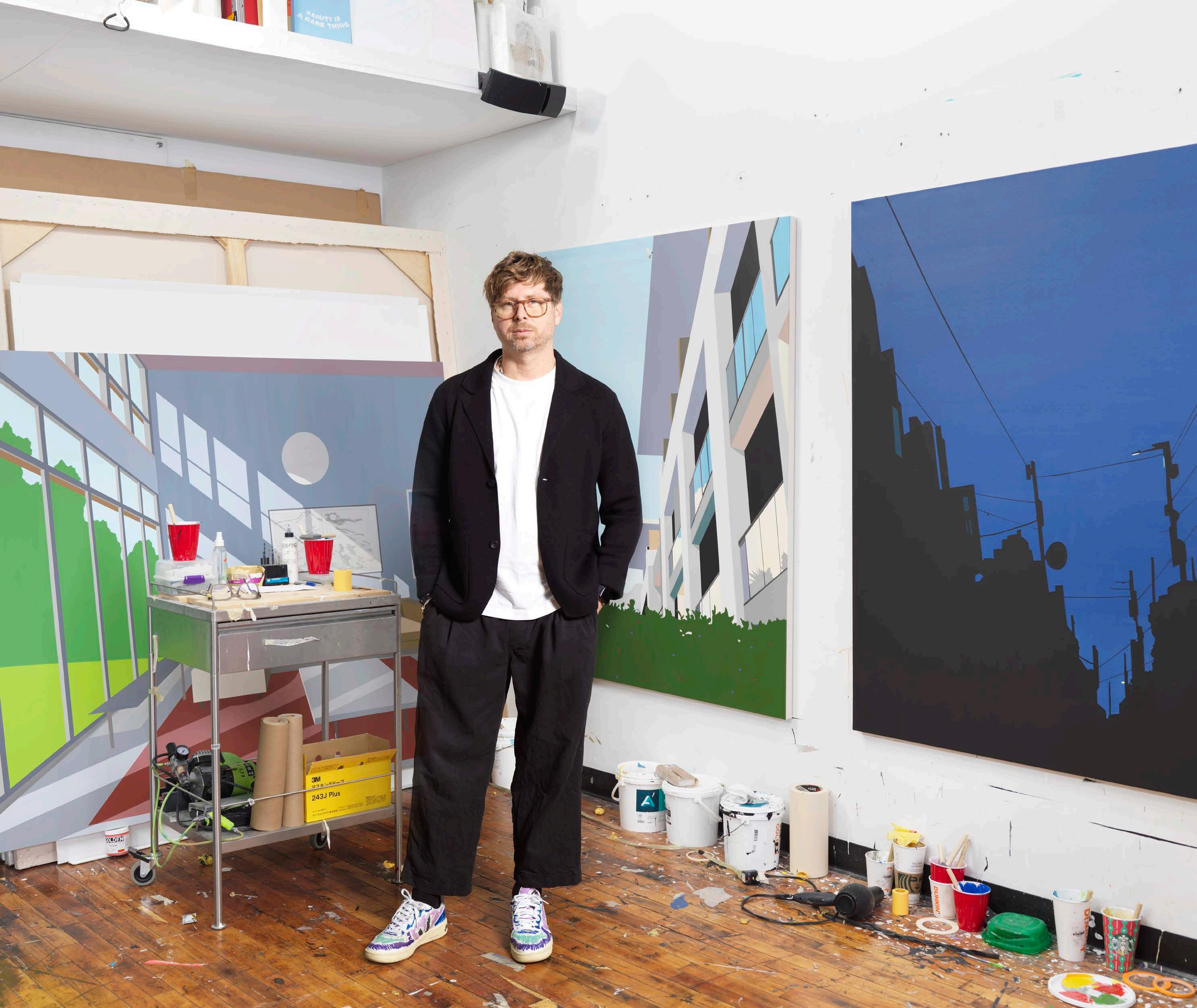 “Brian Alfred’s paintings are seemingly serene explorations of a pictorial tradition of flatness (in the portrayal of landscape and city life from the street)—a tradition that extends back to Ukiyo-e prints and the resulting Japonisme movement in nineteenth-century France, and forward through such contemporary iterations as the paintings of Allan D’Arcangelo and Alex Katz.”