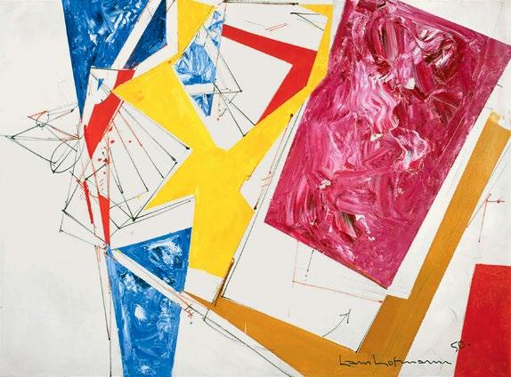 Hofmann’s oeuvre is set within a matrix of avant-garde influence. His early years in Paris and Munich laid the foundations of his practice, a potent synthesis of Cubism, Gestural Abstraction, and Abstract Expressionism, which he encountered upon moving to New York. His involvement with the avant-garde in this era later evolved into his role as a “crucial disseminator”5 of his own conceptual and theoretical ideas on pictorial creation. Teaching at his own school in New York and Provincetown, Massachuse s, from the 1930s to the 1950s, Hofmann taught a generation of modernists that included Lee Krasner, Helen Frankenthaler, and Joan Mitchell.6 This demonstrated his capacity not only to teach and inspire a generation of painters, but also to intrinsically mold and shape the trajectory of modernist painting itself.