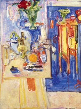 Hofmann had already put “push and pull” into operation during the 1930s. For instance, Table with Teake le, Green Vase, Red Flowers is his answer to Matisse’s Goldfish and Sculpture (1912) and similar pictures such as the two Nasturtiums with the Painting “Dance” (also 1912). Significantly, Matisse remarked in this context: “To be noted: the color was proportioned to the form. Form was modified according to the reaction of the adjacent areas of color. For expression comes from the colored surface that the spectator perceives as a whole.”21 These words represent the embryo for Hofmann’s spatial ethos to which he subsequently a ached its storied catchphrase. It burgeons in the aforementioned 1936 still life. There, rich orange-yellows on the le in the actual room play a tug of war with blue and red in Hofmann’s own paintingwithin-the-painting on the right. The corollary is that Hofmann’s composition is indeed an answer to the three Matisses from 1912 that set the artist’s own paintings within their arrangement.