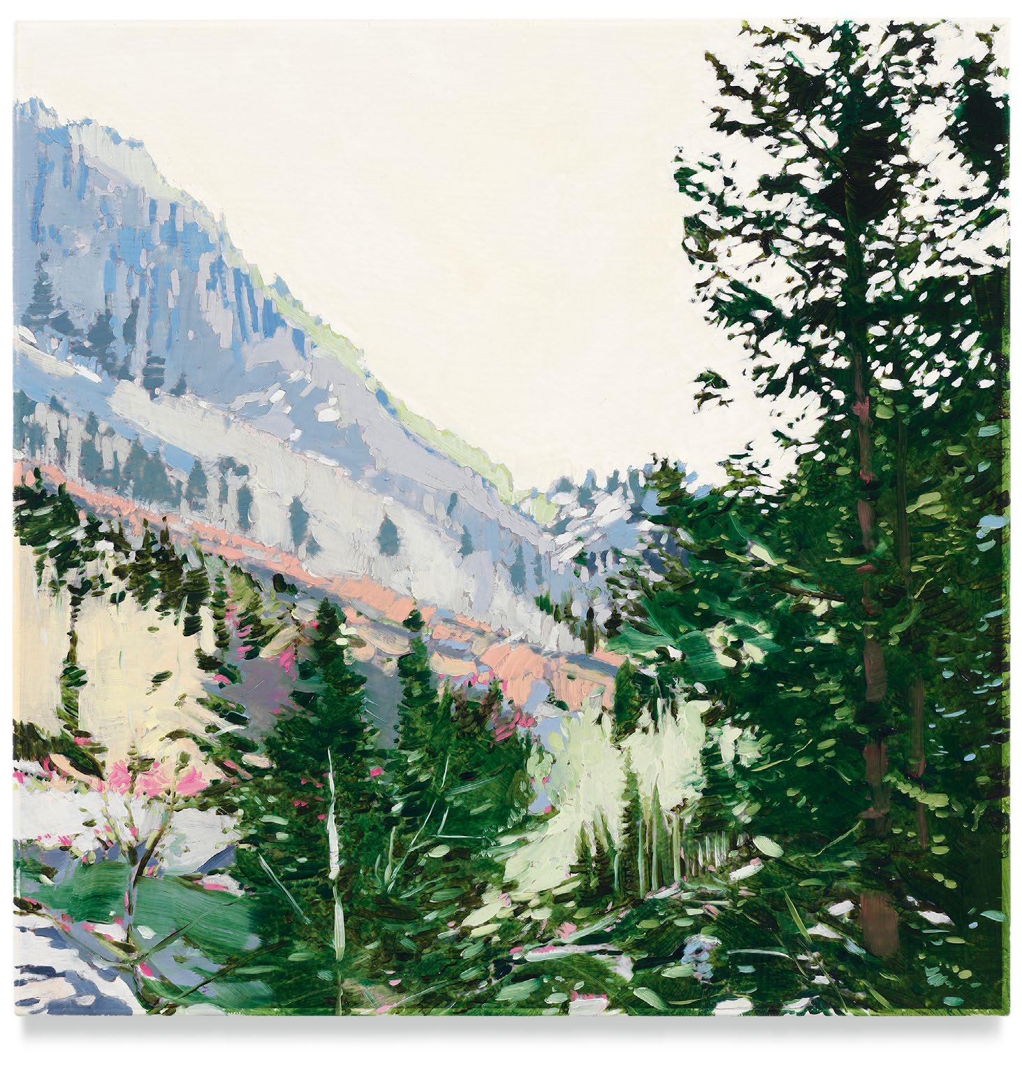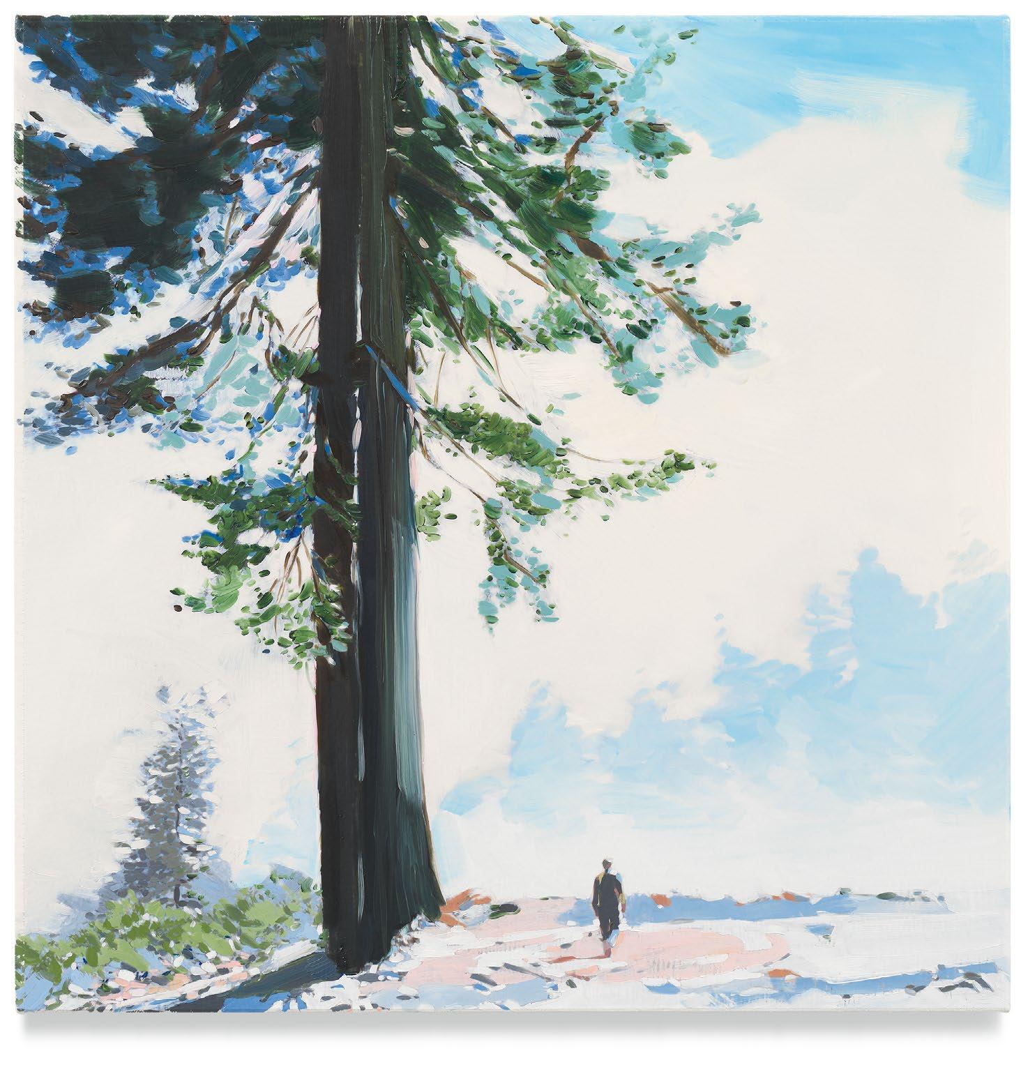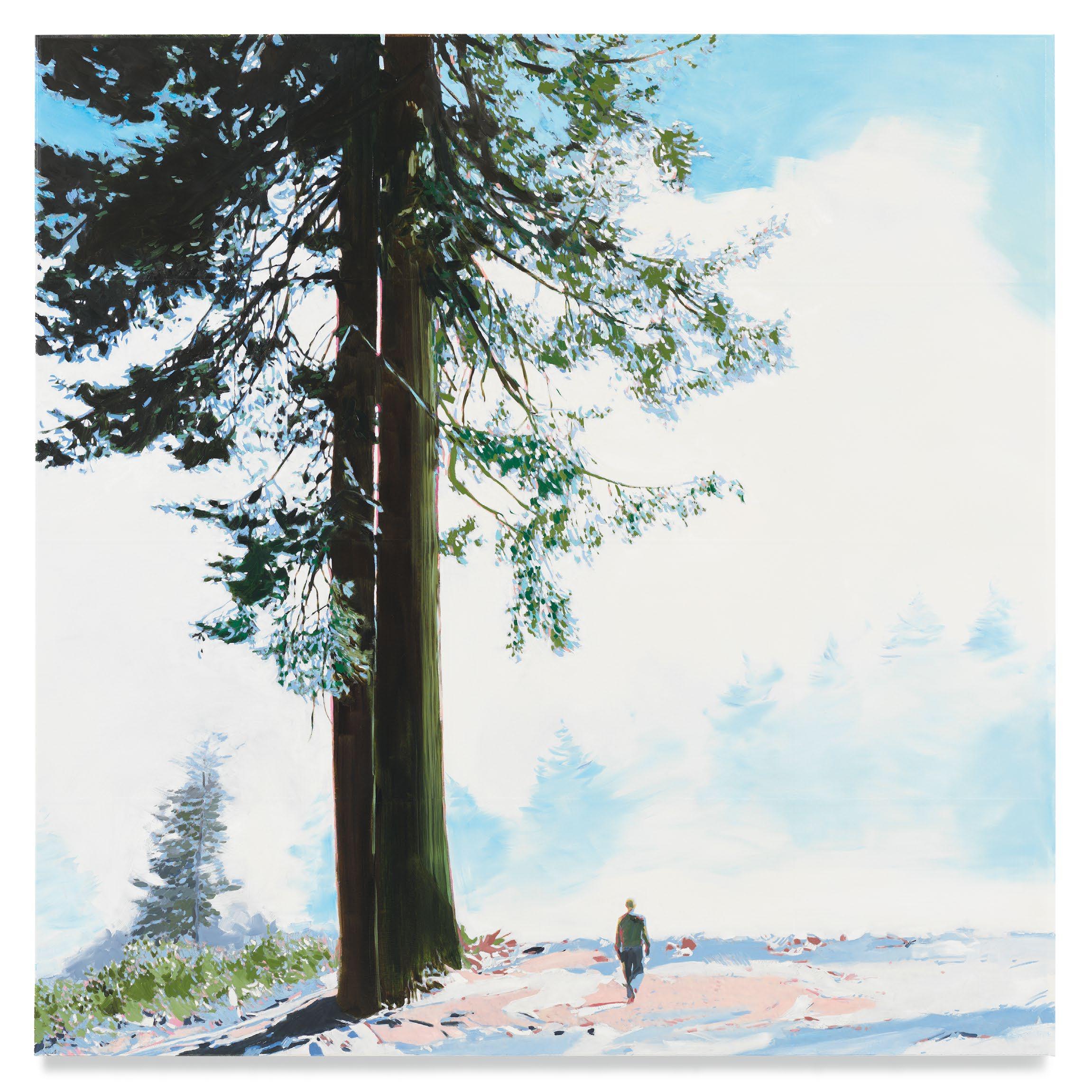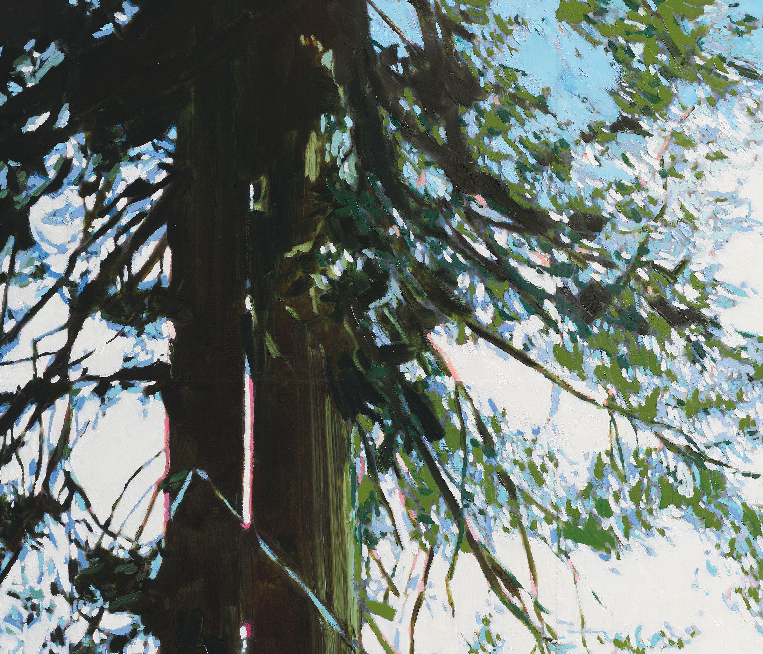 other can be dominated by gigantic trees. Indeed, the redwood in the painting of the same title is so tall that it is, again, hard to believe that the canvas is a square and not, in this instance, a vertical. Instead of looking down, we glance up.