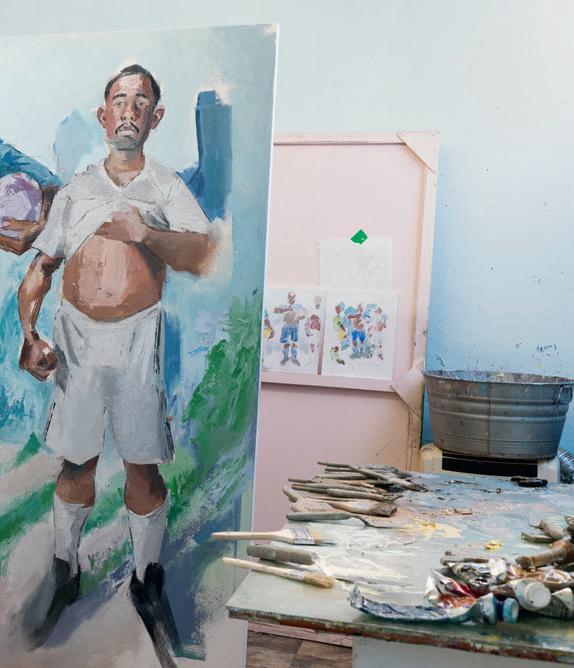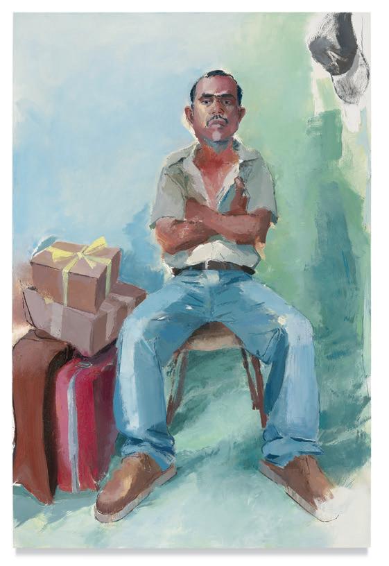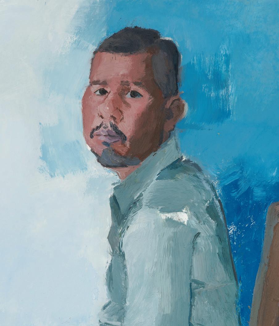 Today, Sonsini and his partner divide their time between Querétaro, Mexico, and Los Angeles. His current portraits are situated within a complex interplay between the personal and the political. While Sonsini’s subject, Latino men, has been consistent over many years, 2019 has put issues of immigration at the Mexican border front and center, issues that have always been present for Sonsini, Barajas, and many of his models. While new political lenses can have a distorting e!ect on the original intention of the portraits, Sonsini accepts the many layers of complexity. “It’s highly unlikely that the reason an artist paints the painting is the same reason someone wants to look at the painting,” he says.