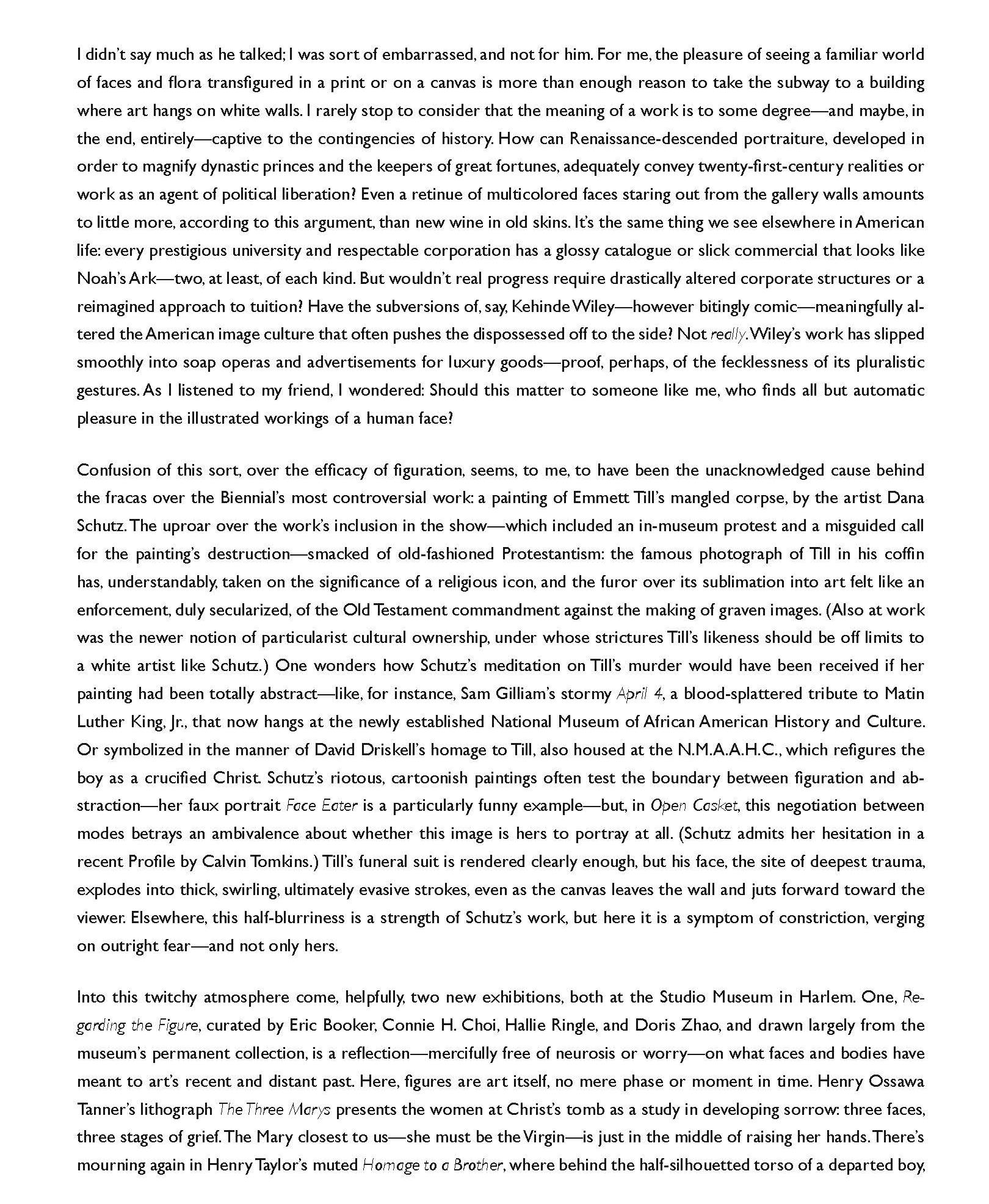 He has dealt this way, in the past, with sinister American information—lynchings, the Ku Klux Klan, the killers Roy Bryant and J.W. Milam who executed Emmett Till.