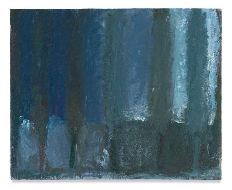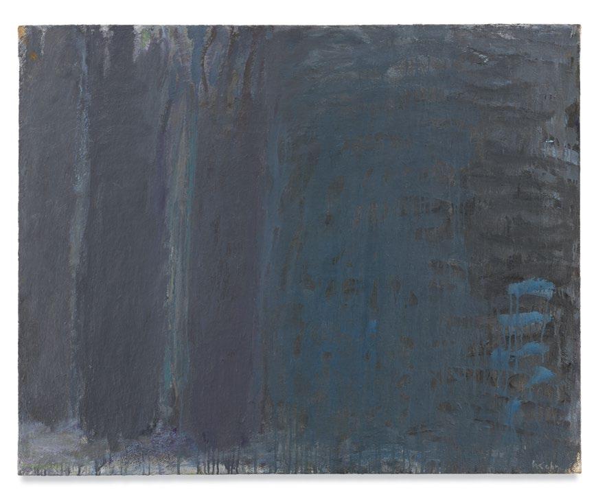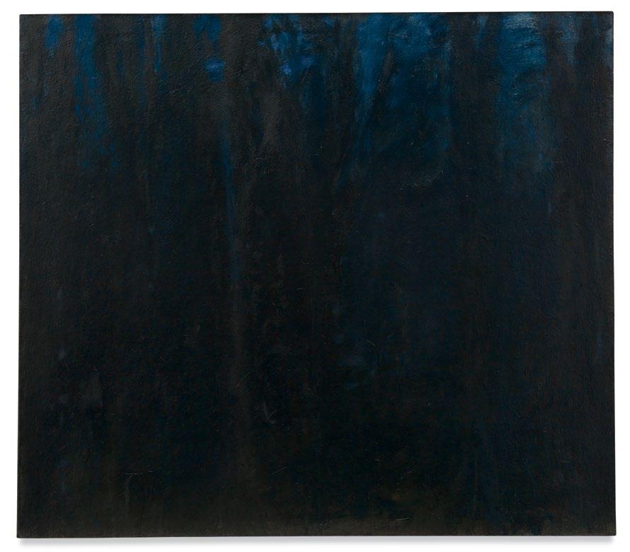 In the murky tree paintings like Cypress Row, a line of blue-black cypress trees forms a top-to-bottom barrier that forbids access, despite the lure of a few touches of light beyond the blunt vertical bars. The marks of struggle and indecision on the canvas constitute a narrative of the painting process that allies these works with the gestural painting of the New York School. As with action painting, this textural density had to be personal and bound up with the painting’s evolution, as if there were value added by evidence of energy invested.