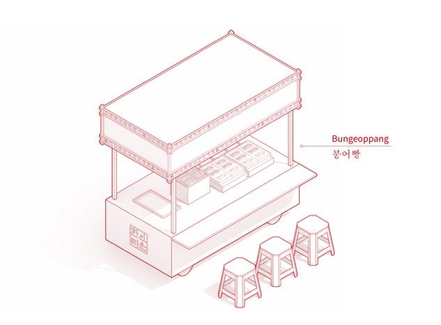 Utilizing the architectural styles of traditional Korean homes, this food stand takes inspiration from their roof structures.