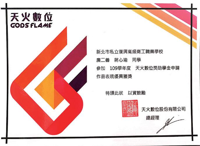 2021 第四屆 虛擬網紅設計大賽 獎 狀