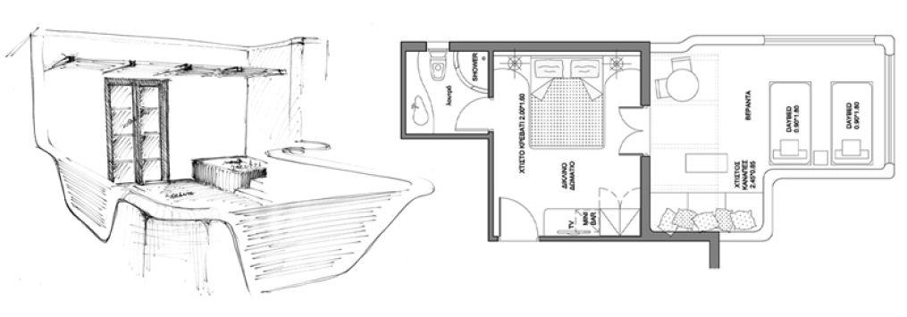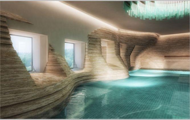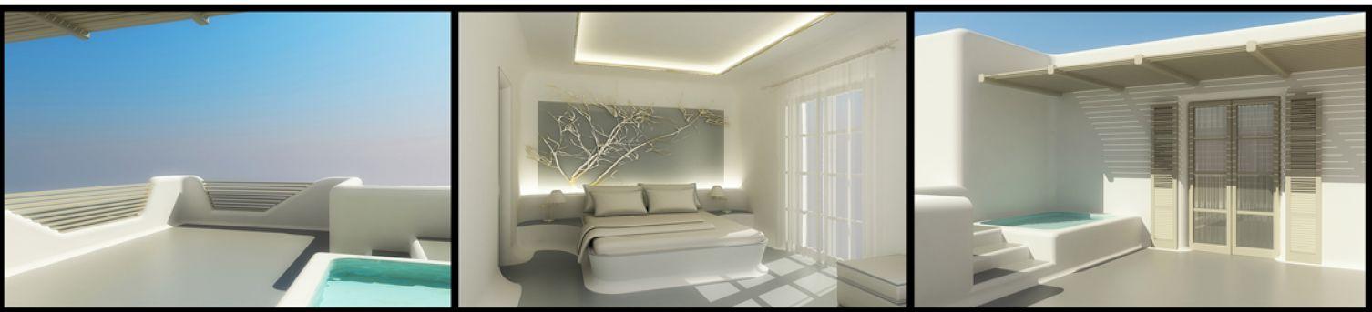 Design proposal for a five-star hotel with the capacity of 50 beds with a spa on one of the islands of Greece, Crete Represents an architectural synthesis of traditional shapes and special attention is given to natural materials such as raw timber and textured stones.The design of the spa area with a big indoor swimming pool and sculptured stone walls add a special note to the mood of visitors.