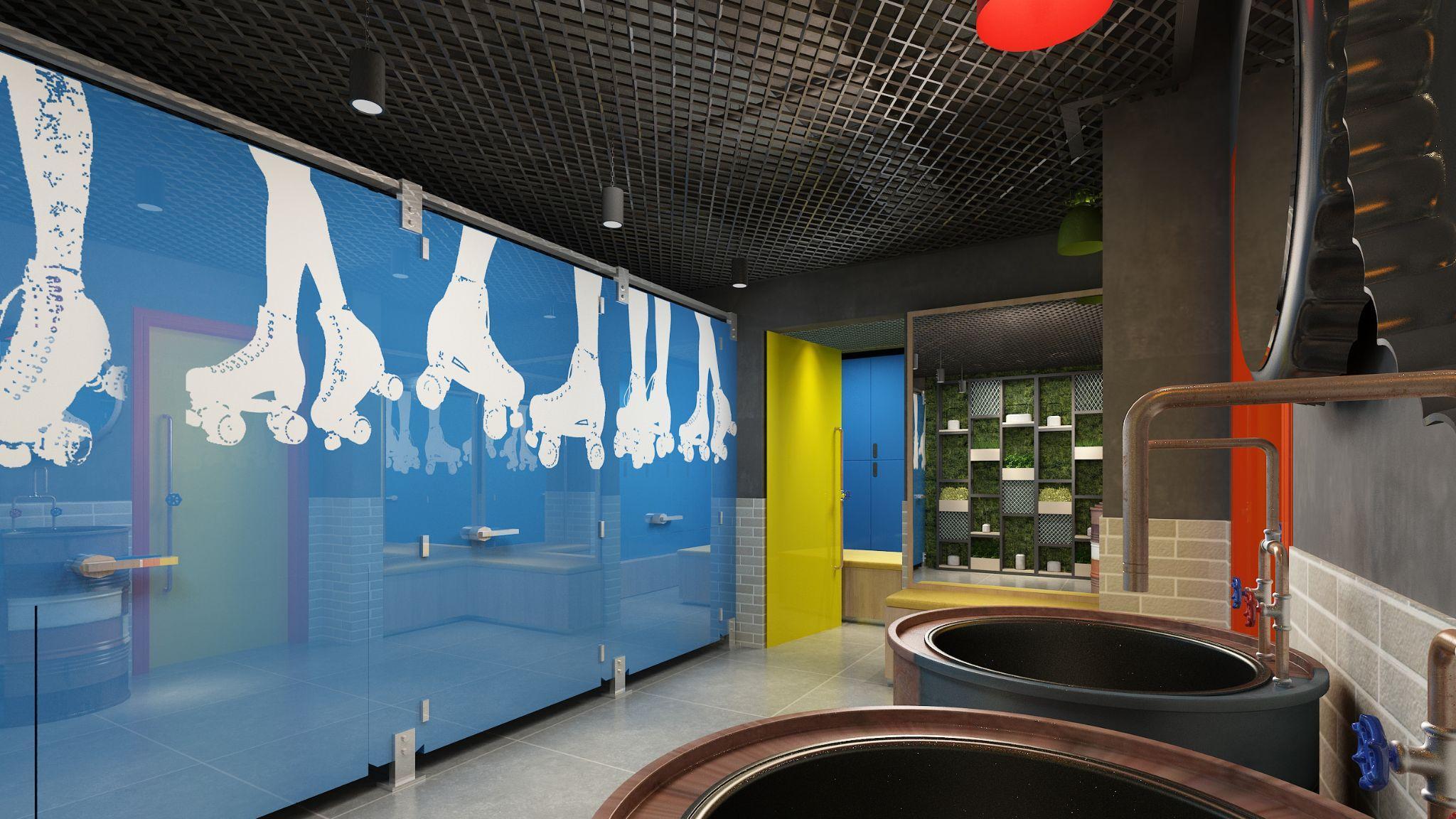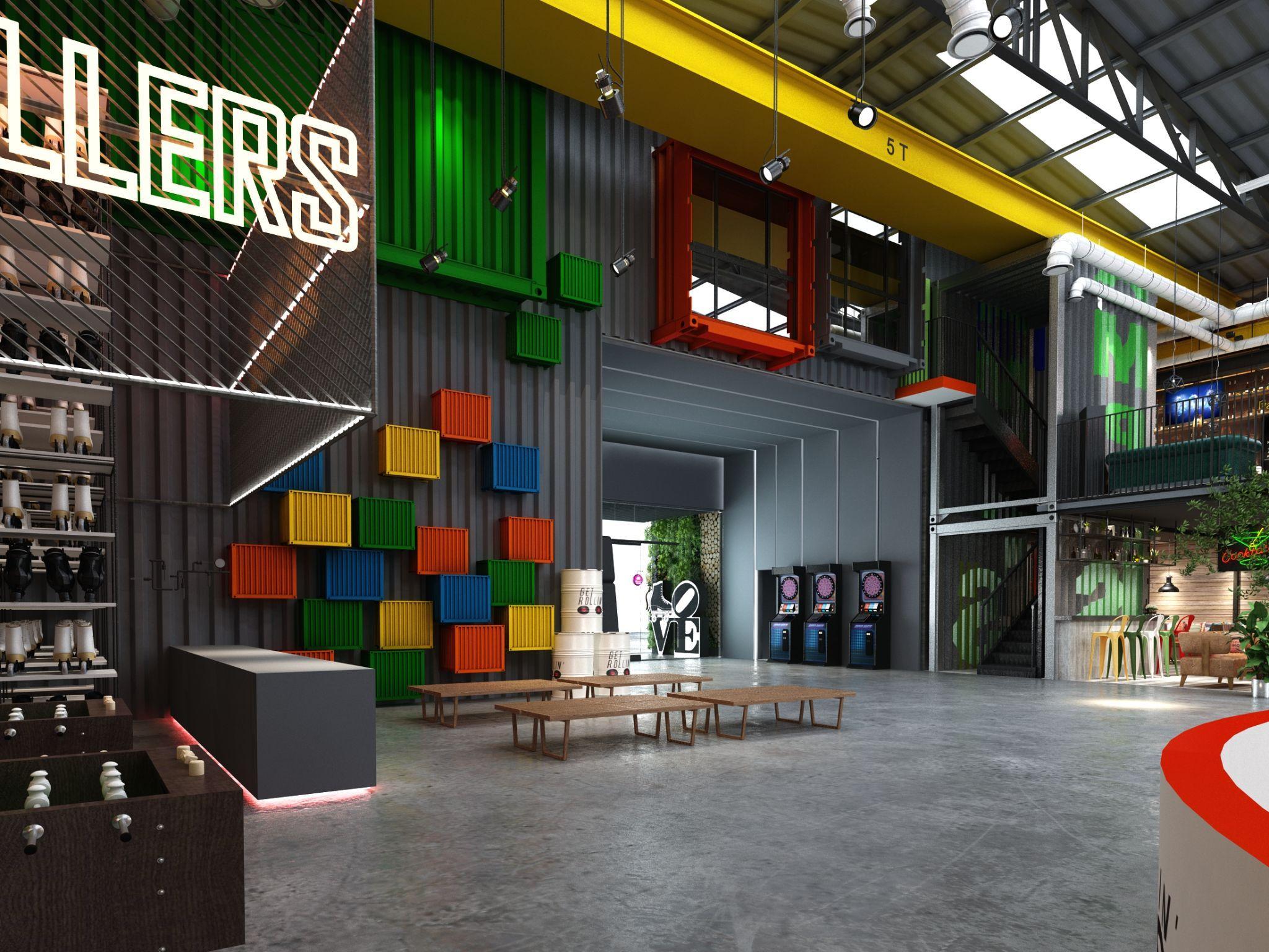 Funky & colorful design elementsonwallsandfloors were used for a unique experience to create a community for networking andsocializing.