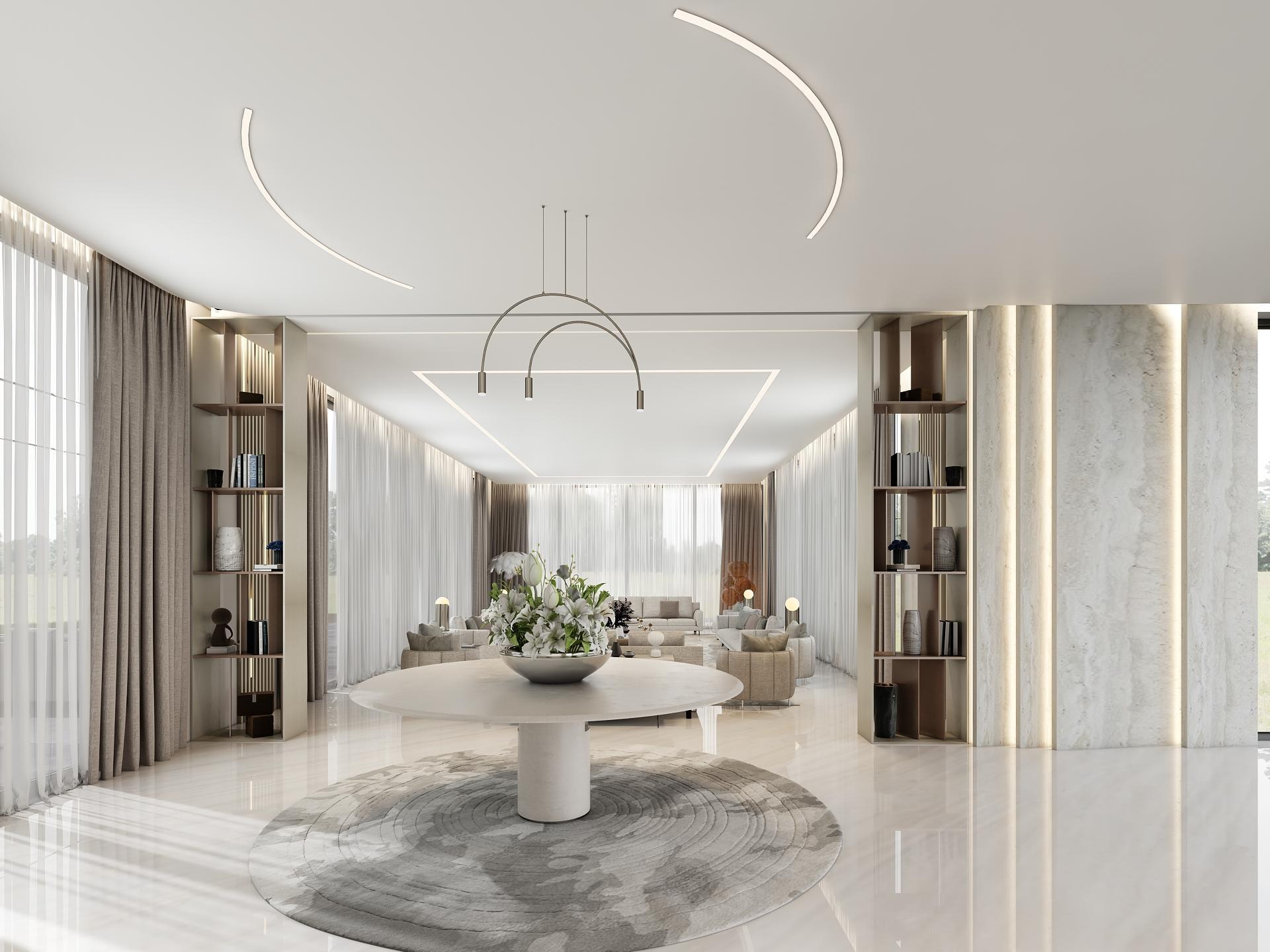 Anexclusiveresidentialvilla interiordesignwherethe neoclassicarchitecture meetscontemporary decorations. Villainteriorsspeakof eclecticdesignlanguageas eachroomhasunique interiordesigningstylefrom theotherluxurious furnishingsandhighend Italianfurniturefrom Visionnaire,FendiCasaand moreofthefinestworldclass furniturebrands.