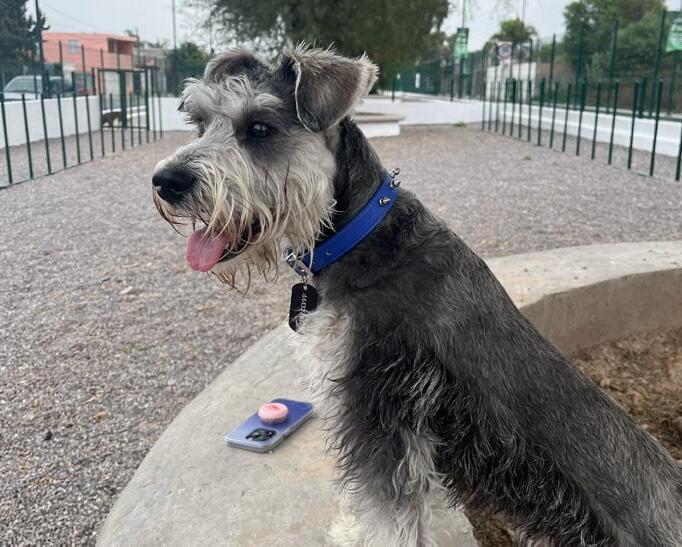Ozzy es la calma hecha perro. Un schnauzer que combina inteligencia, elegancia y una nobleza que se siente desde el primer momento. Tiene un carácter fuerte, pero justo; no necesita imponerse para hacerse respetar, su sola presencia lo dice todo. Es el tipo de perro que observa antes de actuar, que parece entender lo que pasa incluso antes que tú.