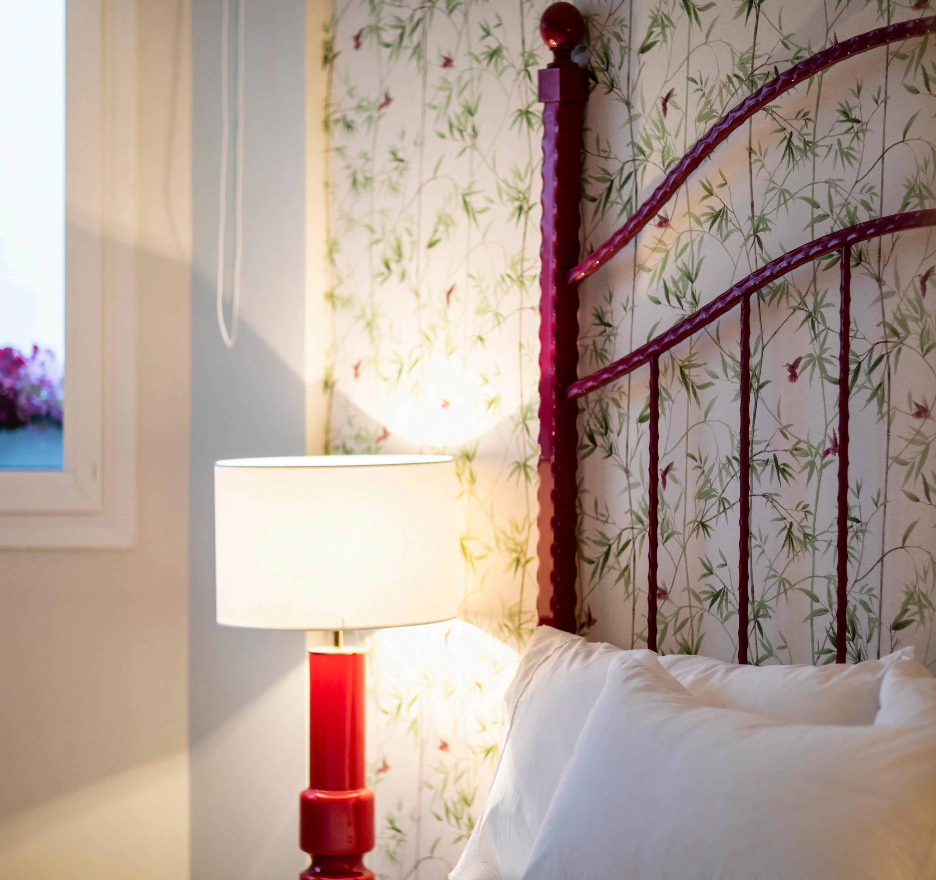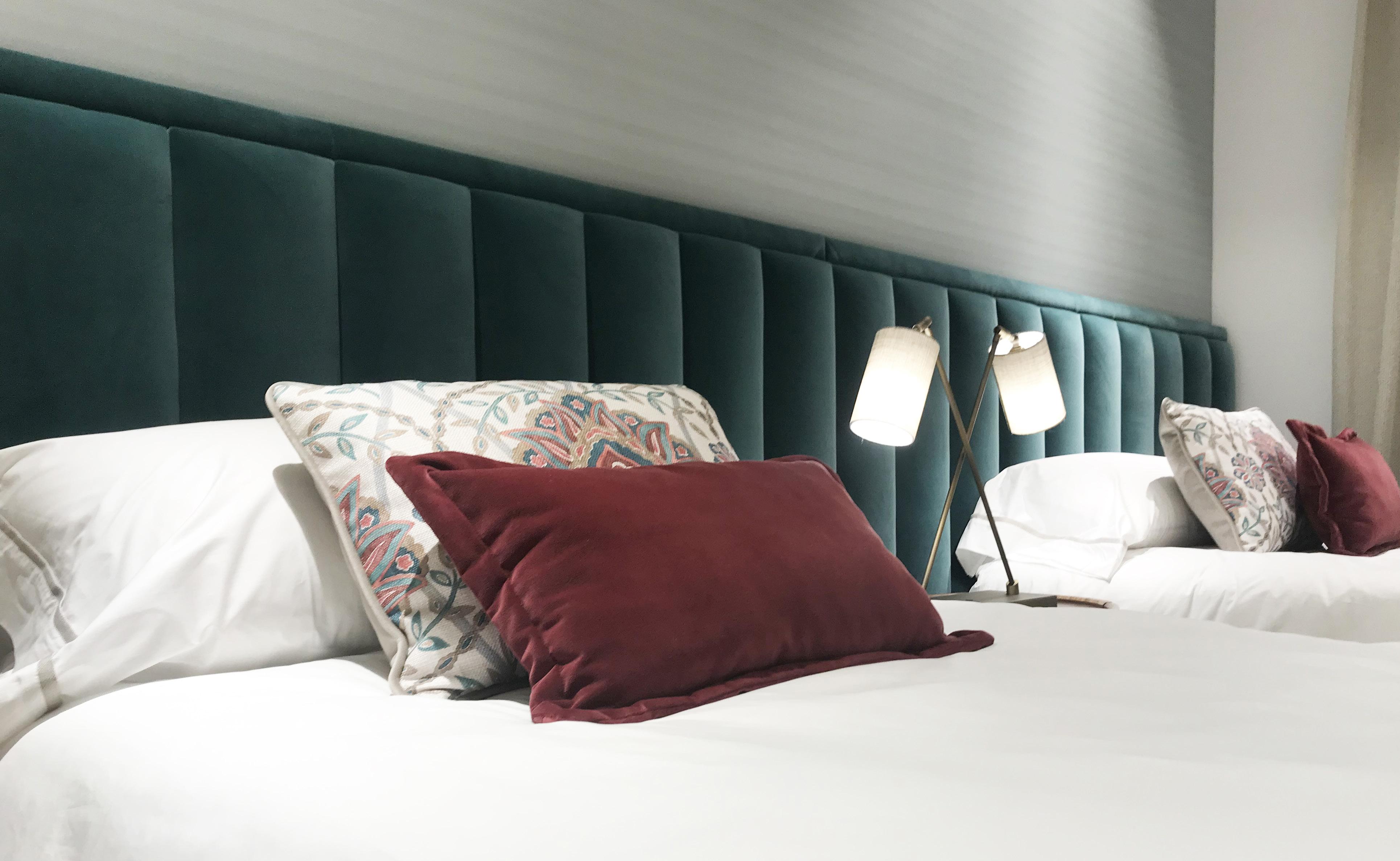 En el dormitorio principal, que rebosa calidez, contraste con el toque más colorista empleado en los dormitorios secundarios