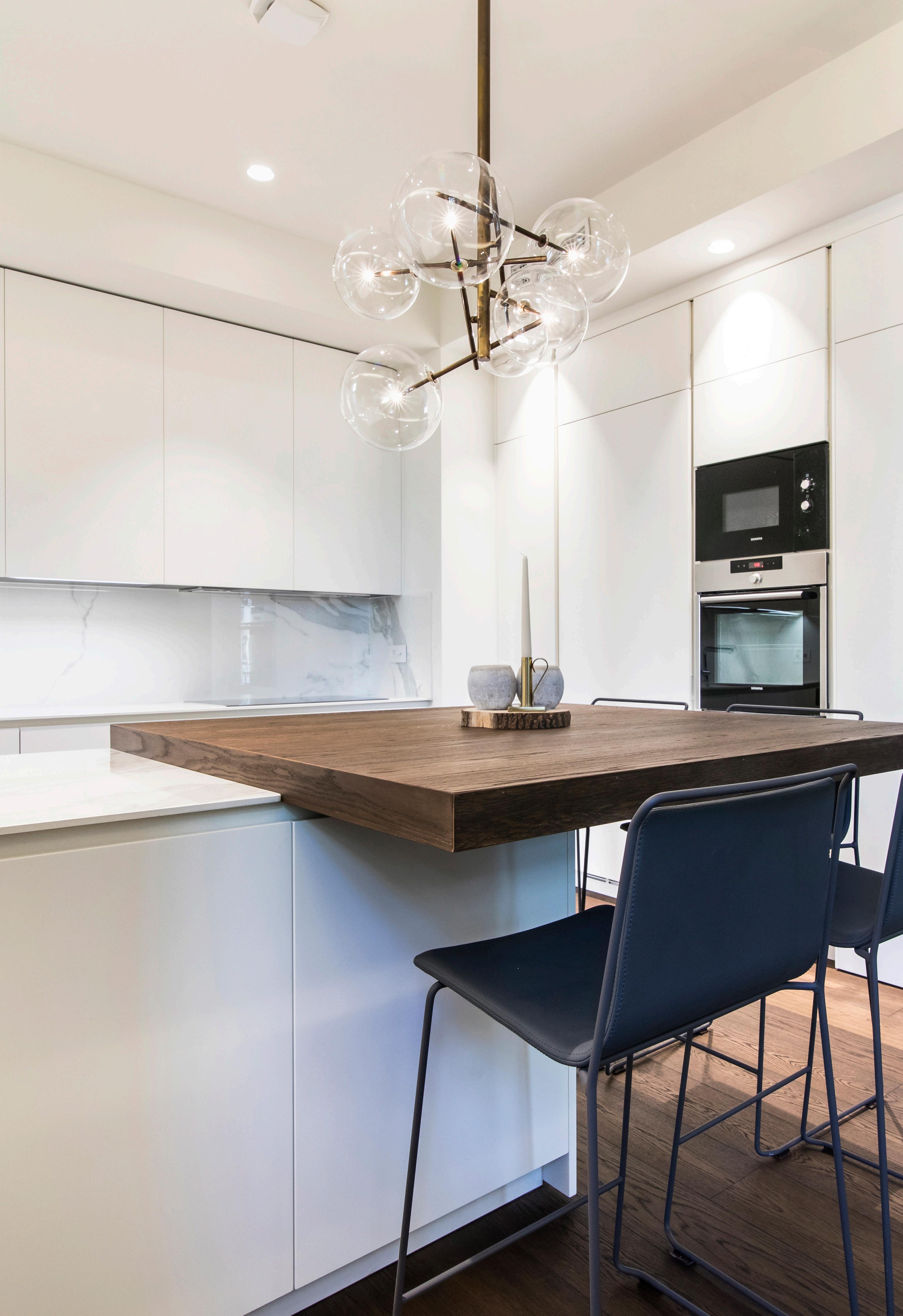 En este apartamento para un joven londinense, se buscaba una casa casa práctica y sencilla, que se consiguió con una propuesta decorativa con el menor número de elementos posibles pero bien seleccionados. Como por ejemplo, el escritorio (diseño del estudio) o la isla de la cocina.