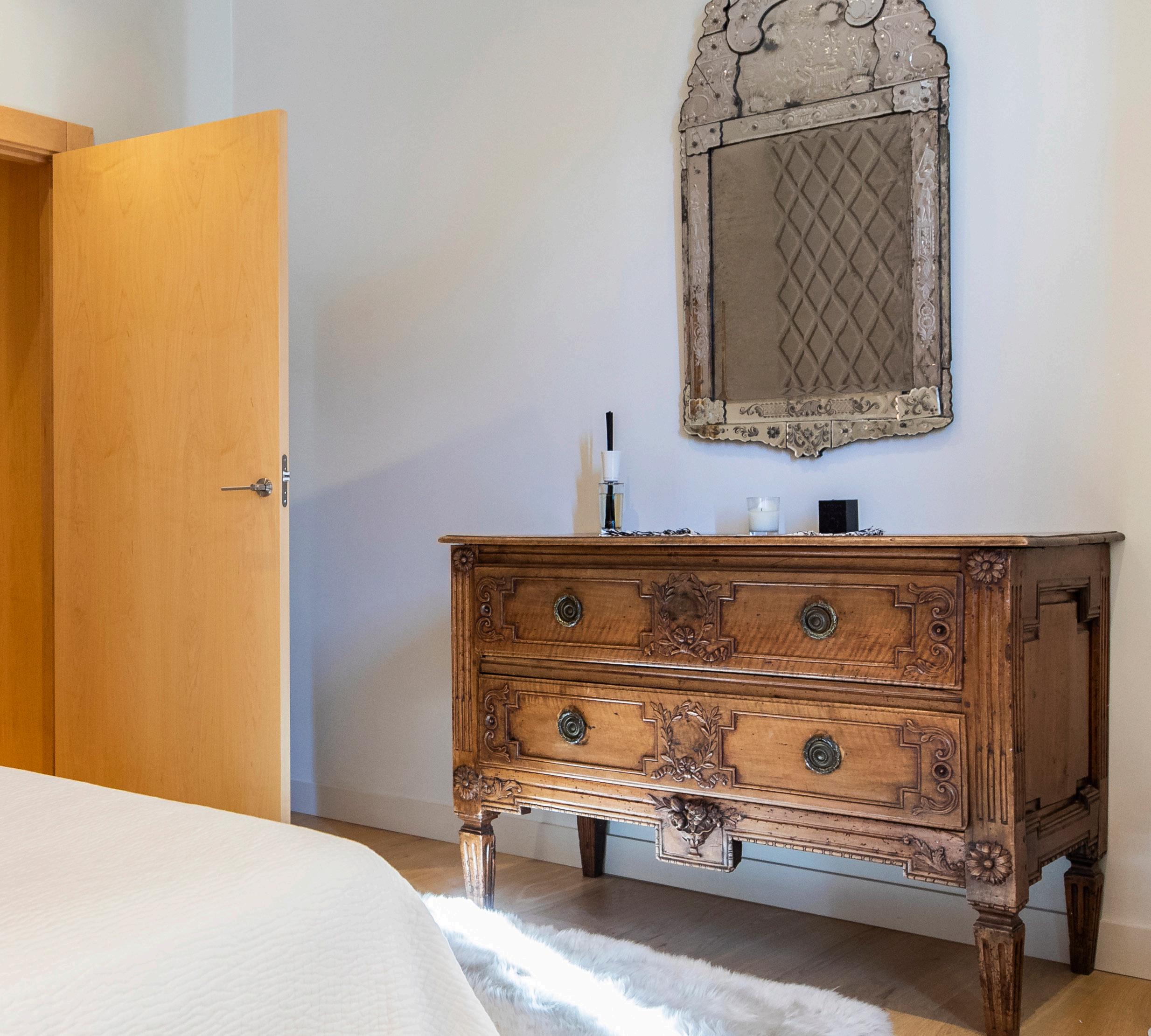 Nuestro cliente contaba con piezas de gran valor sentimental y artístico que se han incorporado al proyecto. Se empleó una base decorativa neutra para que las piezas de anticuario tuvieran el protagonista que se merecen.