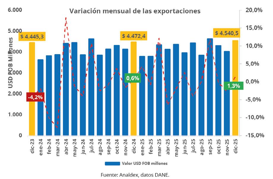 Más del 50% de los departamentos exportadores del país crecieron en sus ventas externas en 2025