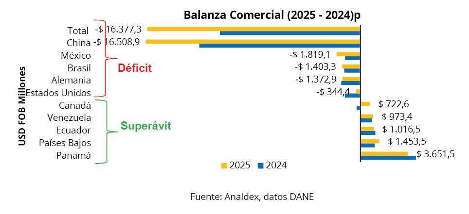 Los países que generaron un mayor déficit comercial fueron: China con USD FOB -$
