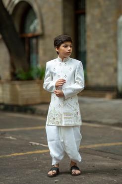 Ethnic wear for boys blends cultural elegance with everyday comfort, making it perfect for festivals, weddings, and traditional celebrations. From classic kurta-pajama sets and stylish Nehru jackets to sherwanis and dhoti-kurtas, these outfits are crafted to reflect heritage with a fresh, modern touch. Designed in soft, breathable fabrics with minimal yet thoughtful detailing, ethnic wear for boys offers ease of movement and a refined festive look. Whether it's a grand celebration or a casual family function, these outfits help boys stay rooted in tradition while looking smart and confident. A perfect expression of culture and style, made for young hearts.
