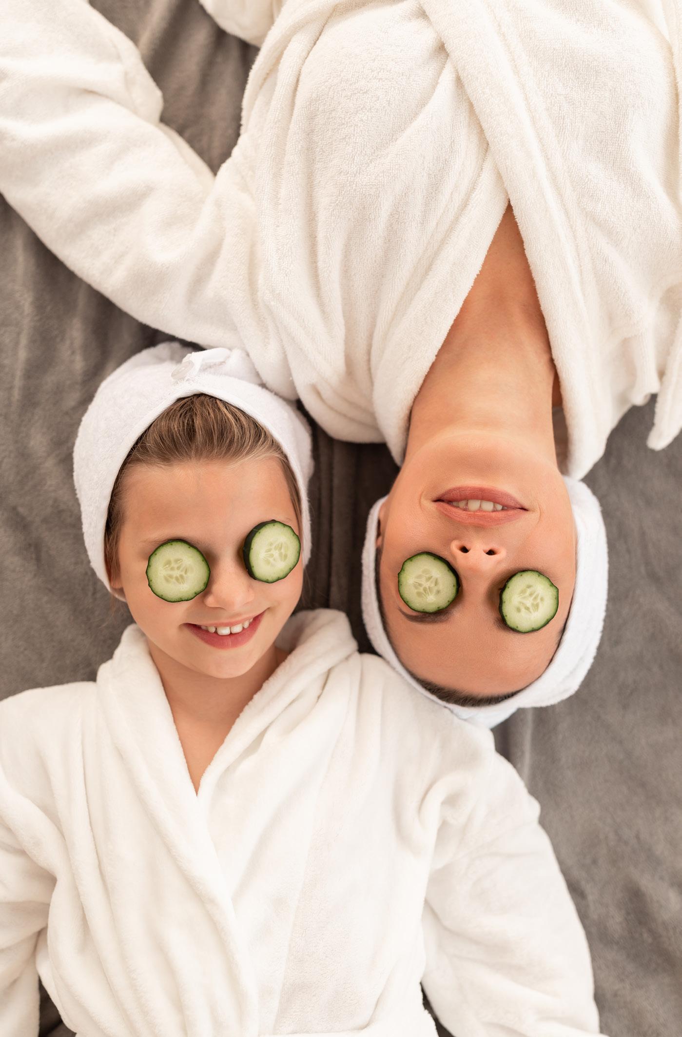 A shared moment of connection. Parent and child enjoy a side-by-side massage delivered by two skilled therapists working in harmony. This bonding journey concludes with a candle lighting ritual, symbolising togetherness, followed by a sweet treat to share.