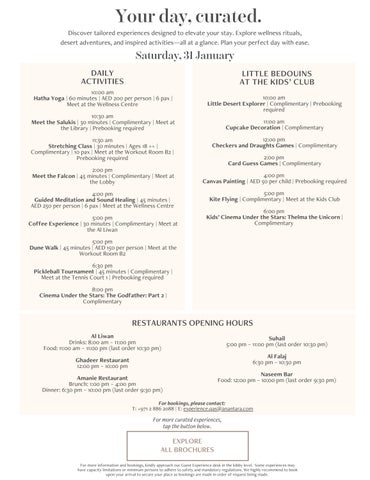 首先,使用沙漠沙轻柔去除身体角质,随后借助热石和经过 加热的 Rub' Al Khali 沙疗护理膏进行特色按摩,帮助您深度 放松,最后进行快速面部护理,让暗沉肌肤瞬间重焕光彩。
