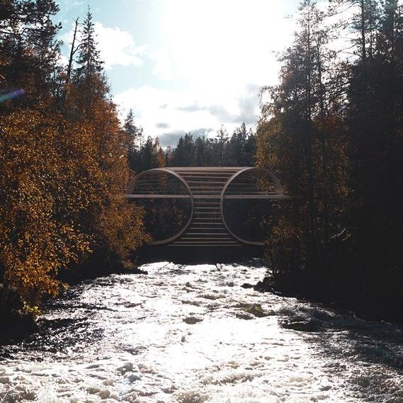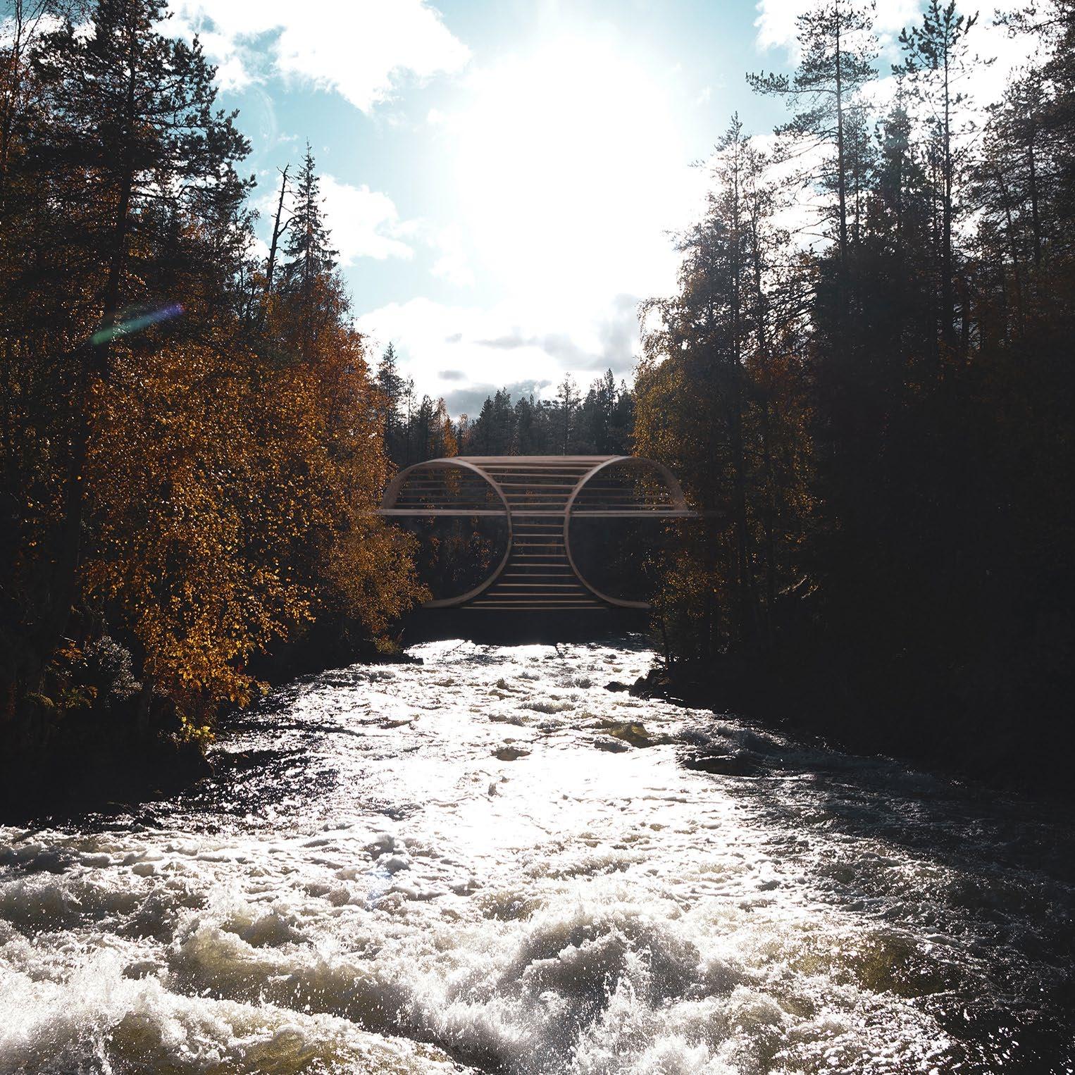 The proposal for a wooden pedestrian bridge in the national park serves both as a viewpoint and an object of observation. The bridge's structure is mostly wood. It does require some steel structure to be fully supported.