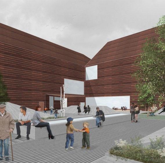 The primary concept behind the urban plan revolves around two essential themes: community and climate consciousness. Both of these themes hold significant importance when considering future construction and living. Building with climate consciousness strives to combat and adapt to climate change, while community plays a crucial role in enhancing people's well-being and contributing directly to environmental sustainability.