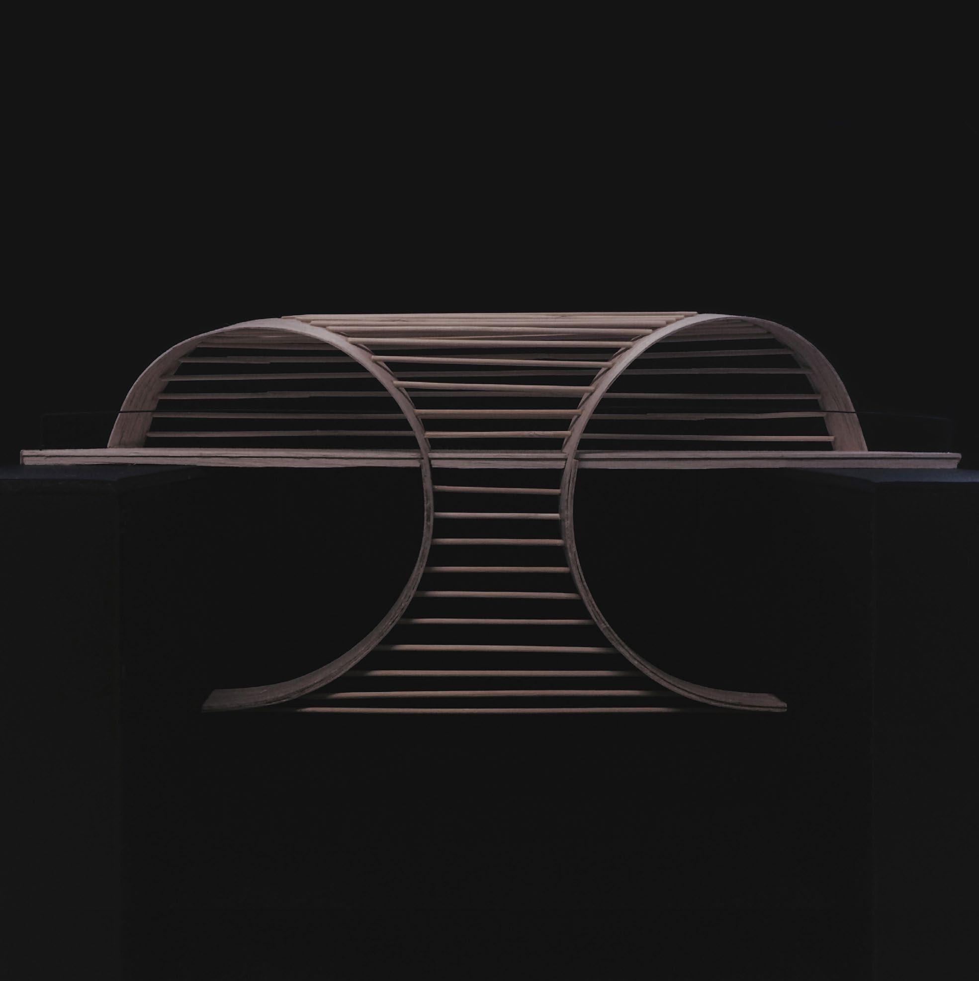 The idea was born truly in cooperation. After hours of sketching sense and nonsense (a tail of a fish) at one point, one of us drew one thing, and another saw something different, and this is how this bridge was born.