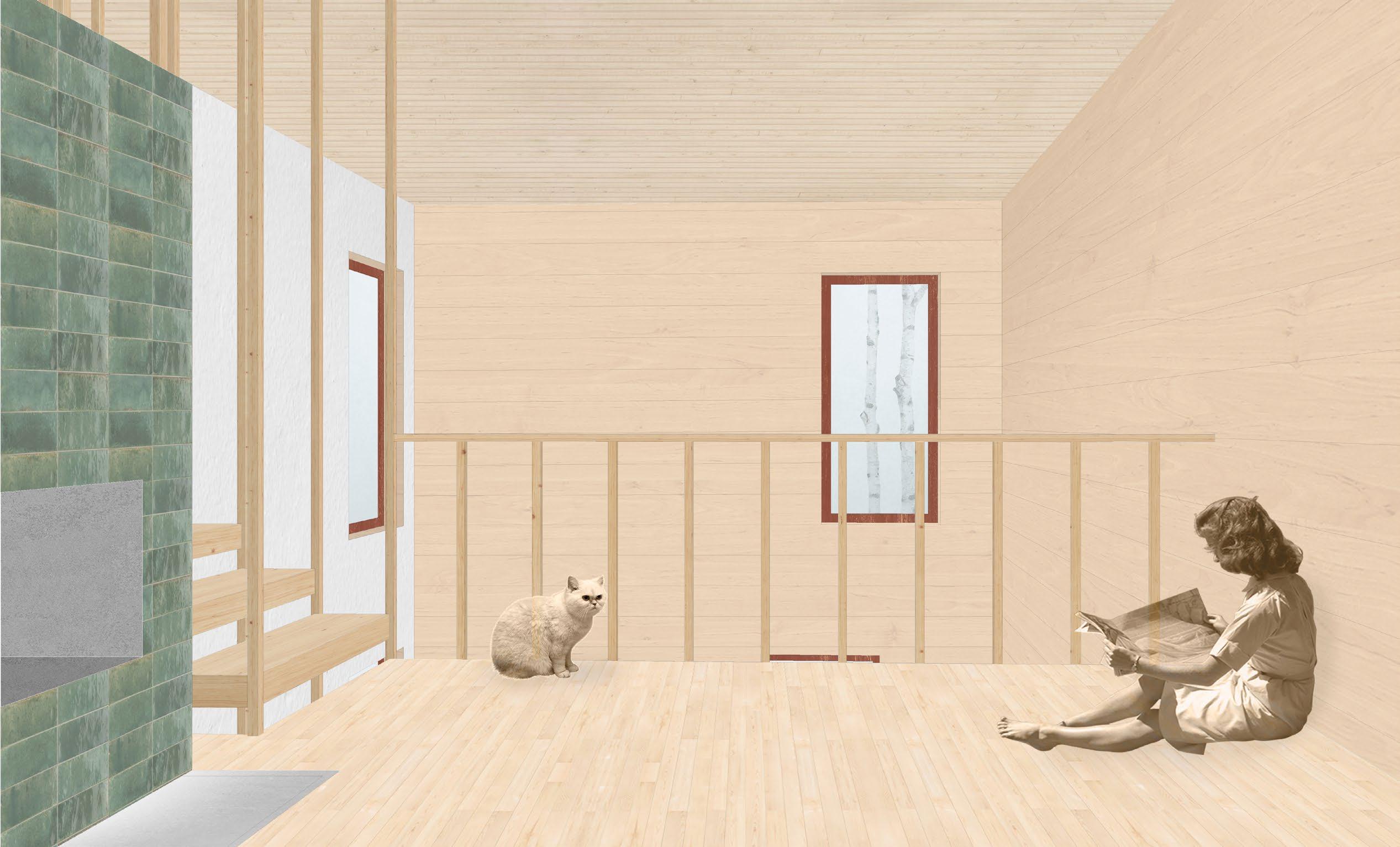 The structural design has been thoughtfully crafted with sustainability in mind. Timber, being a local and renewable natural material, is easy to work with, relocate, disassemble, and recycle as needed. Timber is a fitting choice for Tuusula, given its historical connection with log villas. The plan features non-settling laminated timber, allowing for a shorter corner.