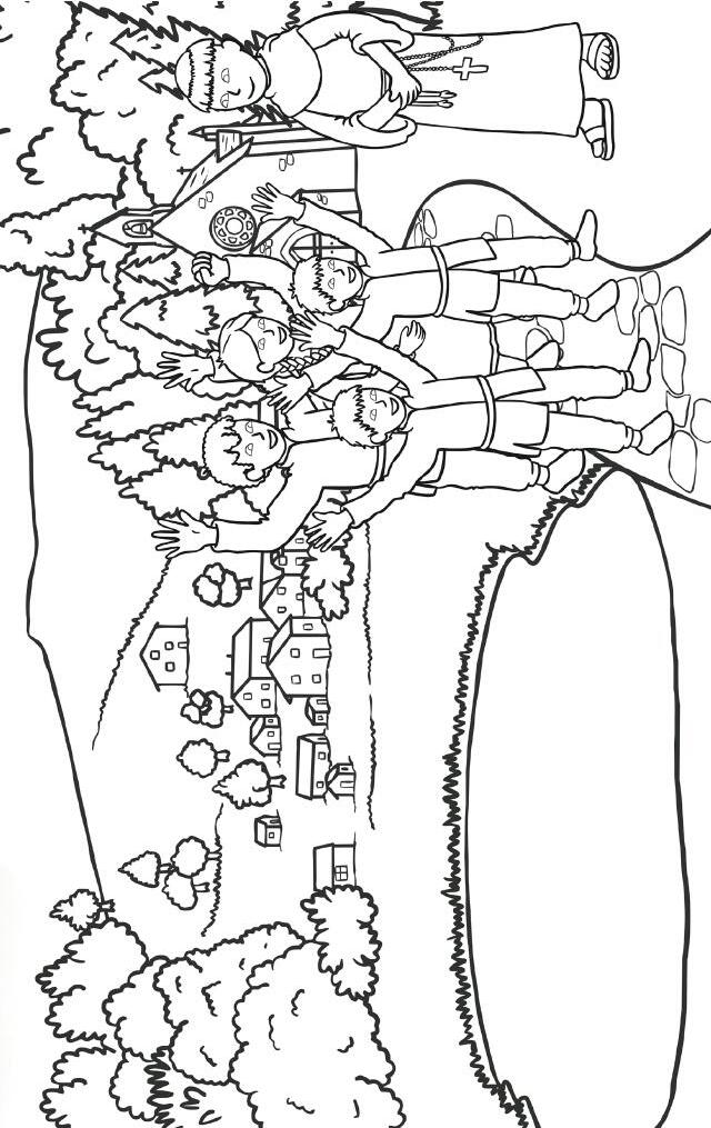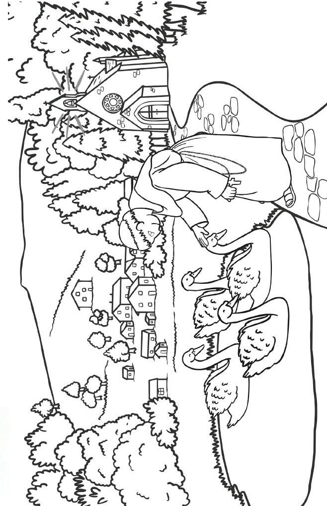 Old and weary, the swans swam toward the sound as quickly as they could. On the shore stood a small church, and from its doorway came a kind old monk named Caomhóg.