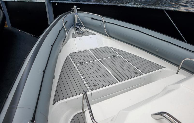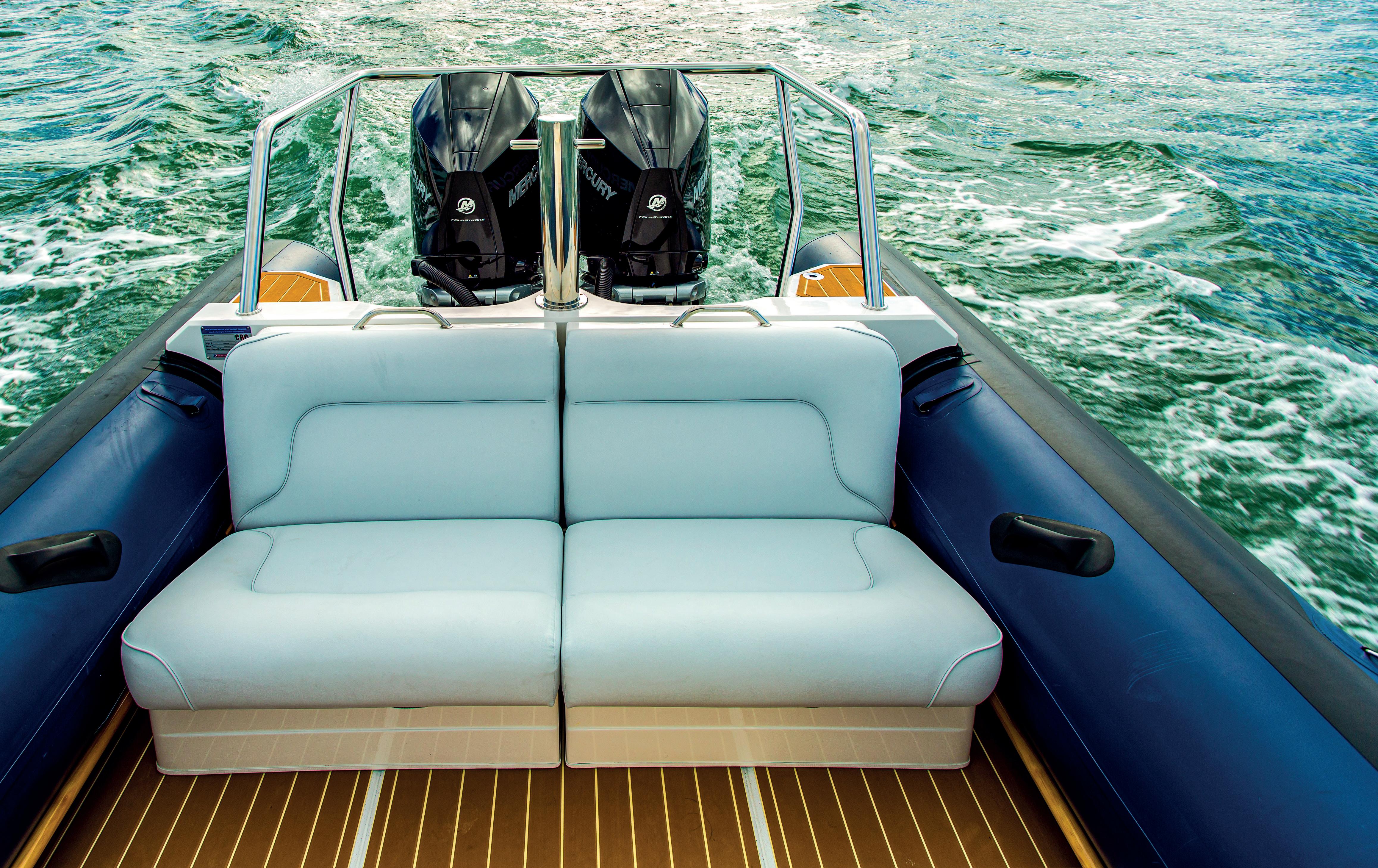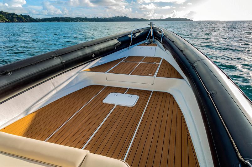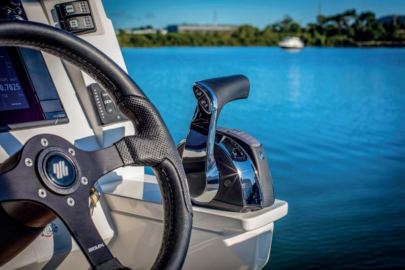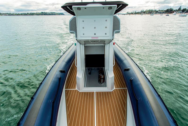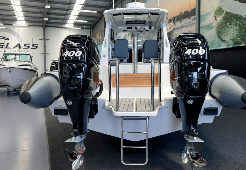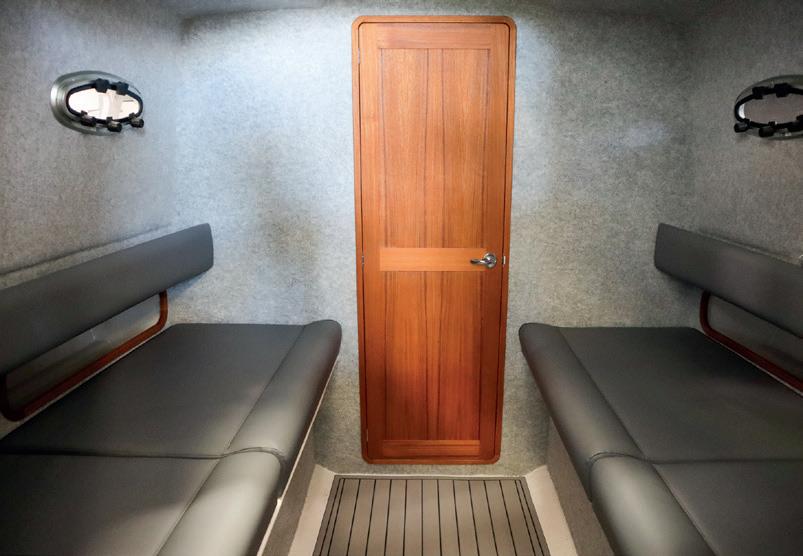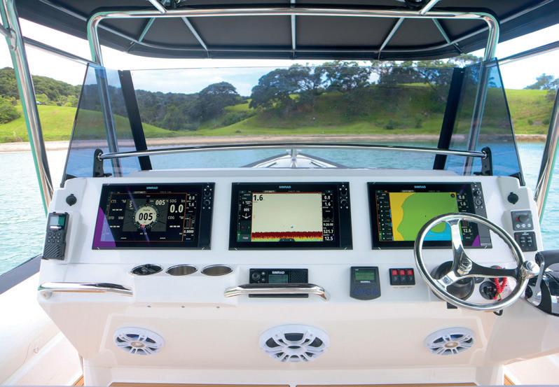 It’s over-sized centre console has room for three large MFD screens and features three shock mitigating captain’s seats. Thanks to the boat’s massive internal beam of 2.9m there’s huge storage space and even the optionto add extra seating or cockpit bar for entertaining.
