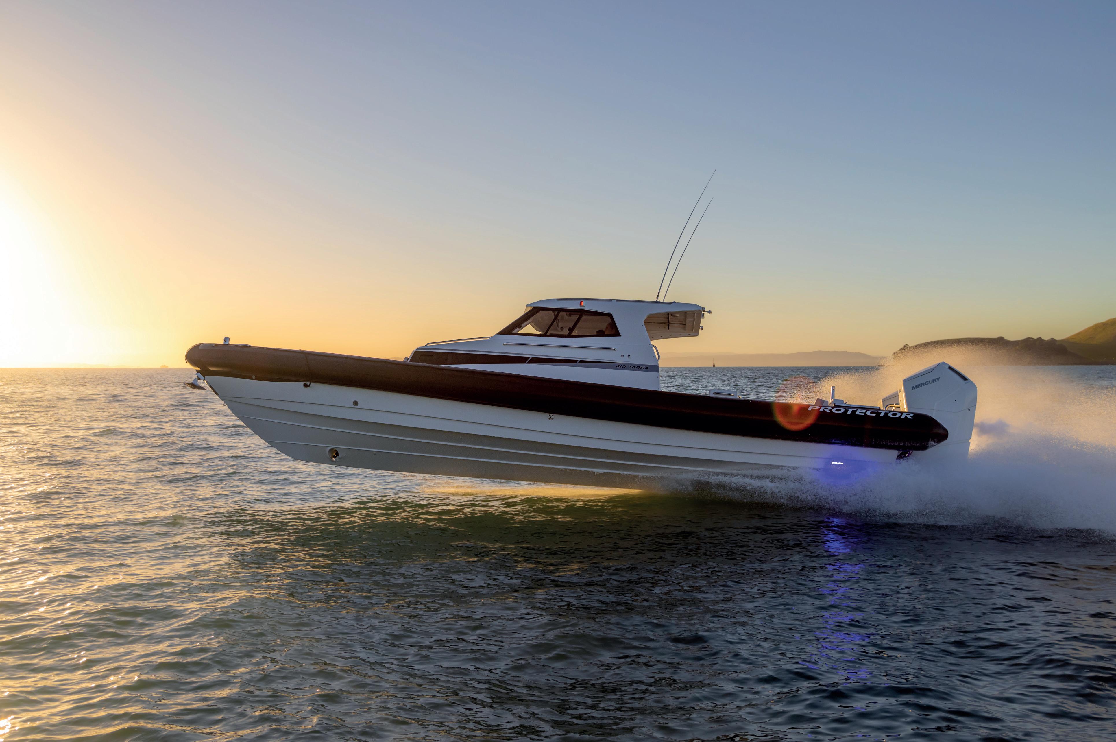 The Protector 410 Targa incorporates the best of our 380 Targa but with a larger aft cockpit. Built for discerning owners or organisations who require more deck space for entertainment or commercial purposes. Built tough with Protector’s high quality precision craftsmanship for the most demanding users, the Protector 410 Targa a su-premely equipped, high-speed, ultra-comfortable adventure boat providing the ultimate all day on the water experience.