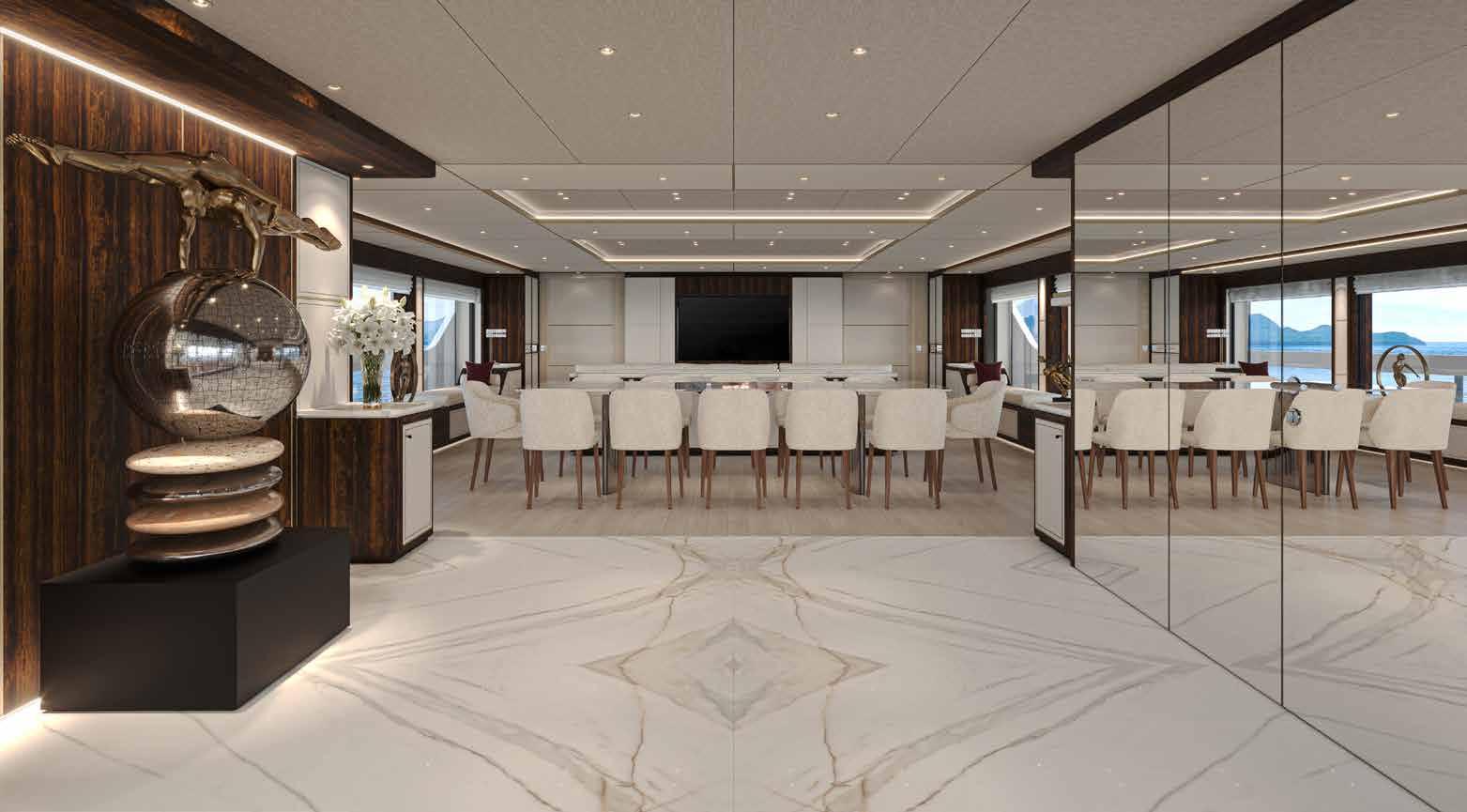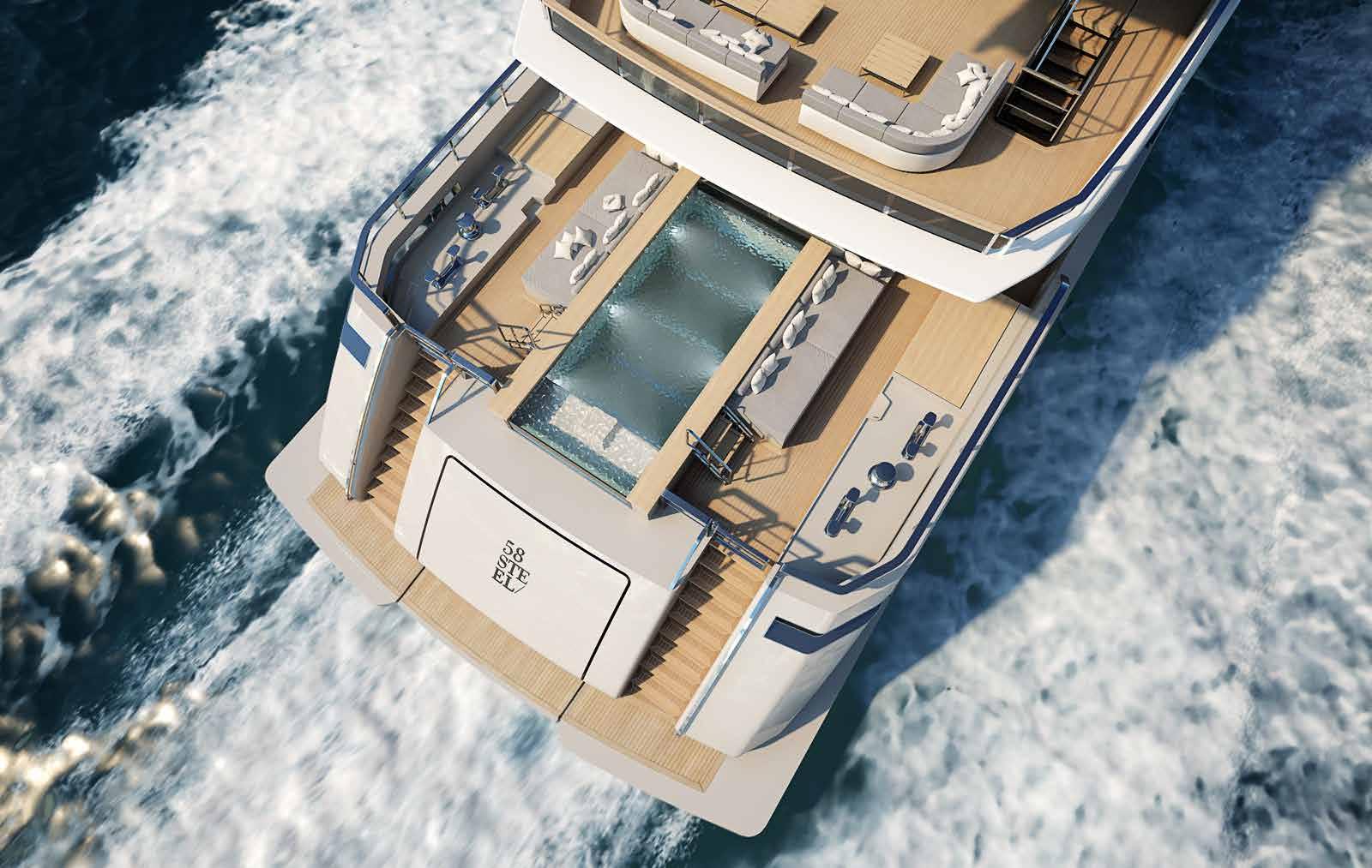 This brochure shall not be regarded as a contractual offer regarding the sale of yachts from the shipyard to individuals or companies. All the information contained in this brochure, including without limitation any technical or performance data, pictures, and drawings, are mere indications with no contractual value.