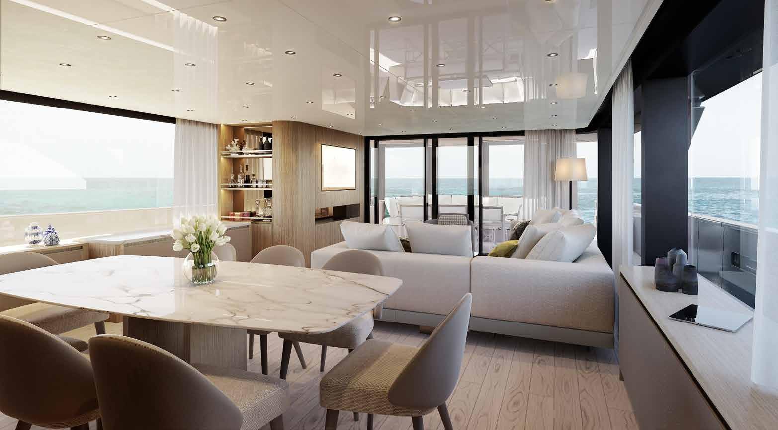 This brochure shall not be regarded as a contractual offer regarding the sale of yachts from the shipyard to individuals or companies. All the information contained in this brochure, including without limitation any technical or performance data, pictures, and drawings, are mere indications with no contractual value.