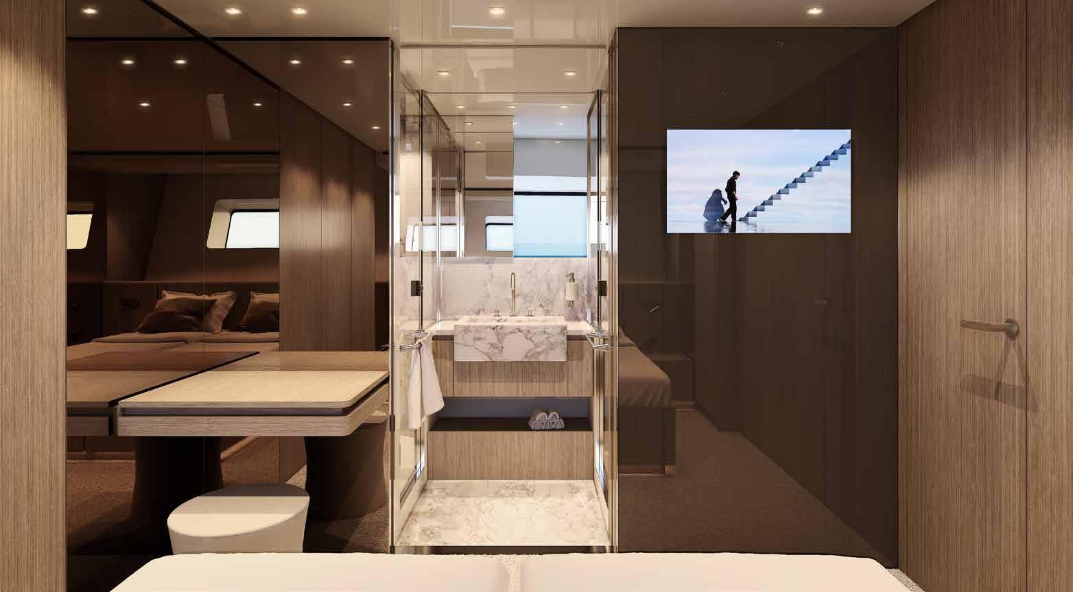 Mirror that hides TV in owner’s cabin, jolly and 2 guest cabins (stopsol bronze mirror)